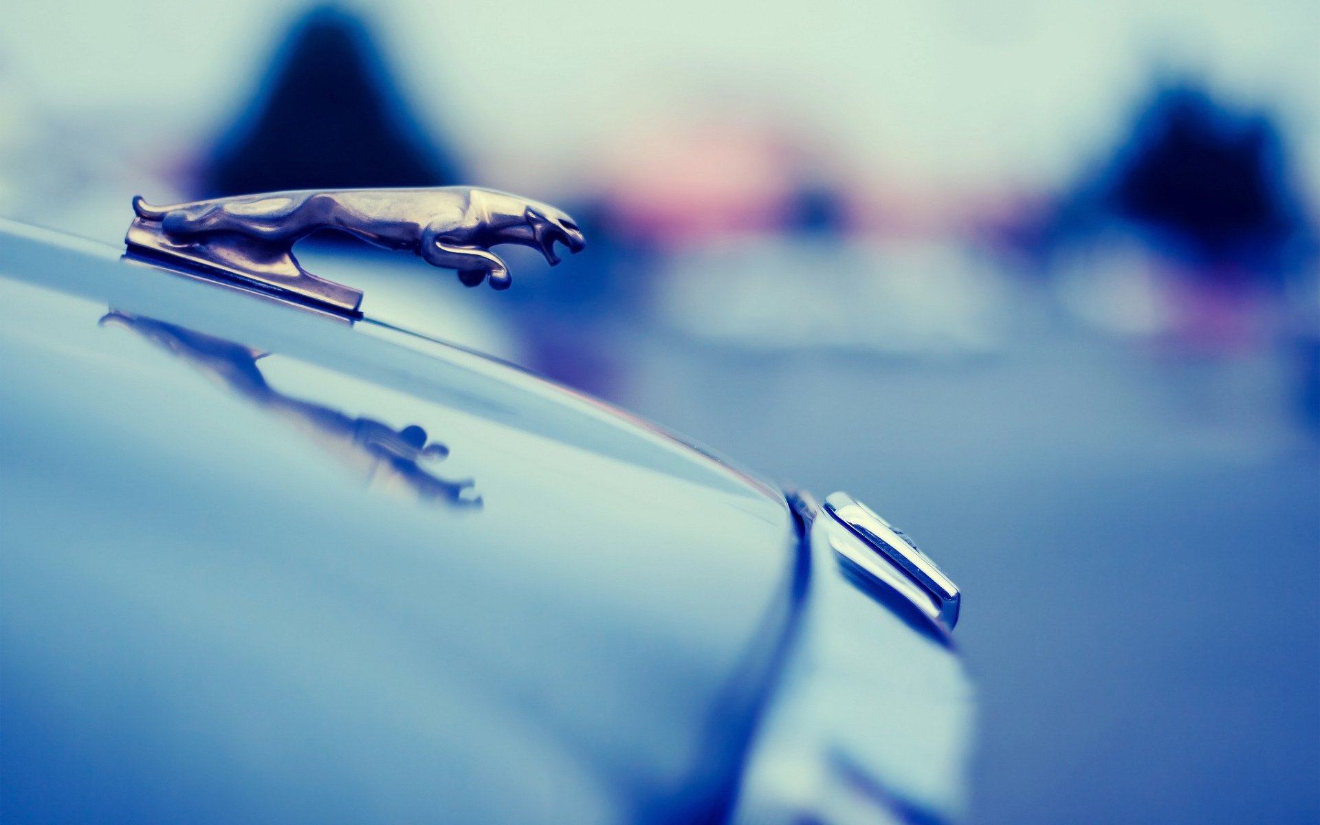 Schwarzer Jaguar in der Nacht auf dem Parkplatz
