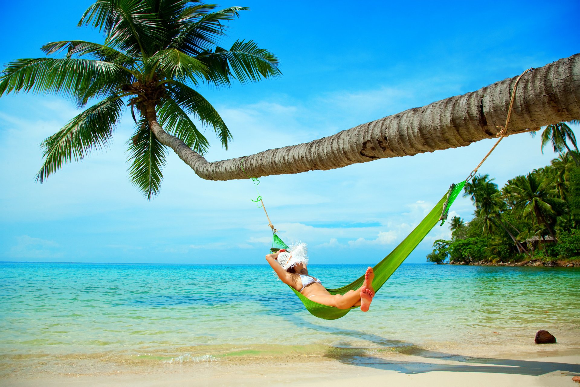 Das meer, die palmen und das mädchen in der hängematteDas Meer, die Palmen und das Mädchen in der Hängematte