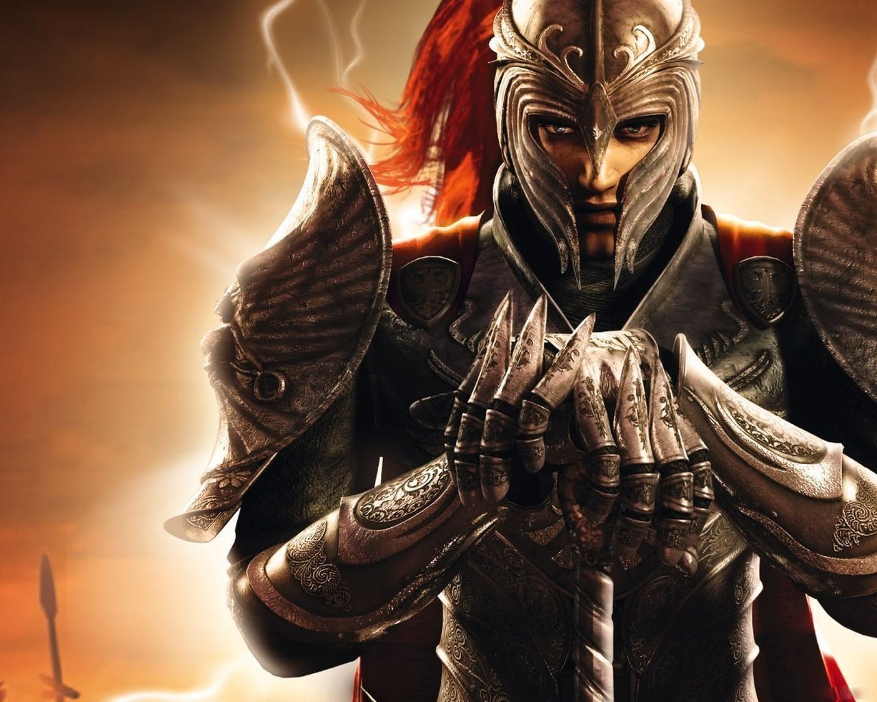 Die ruinen der altstadt und der charakter mit dem schwertDie Ruinen der Altstadt und der Charakter mit dem Schwert