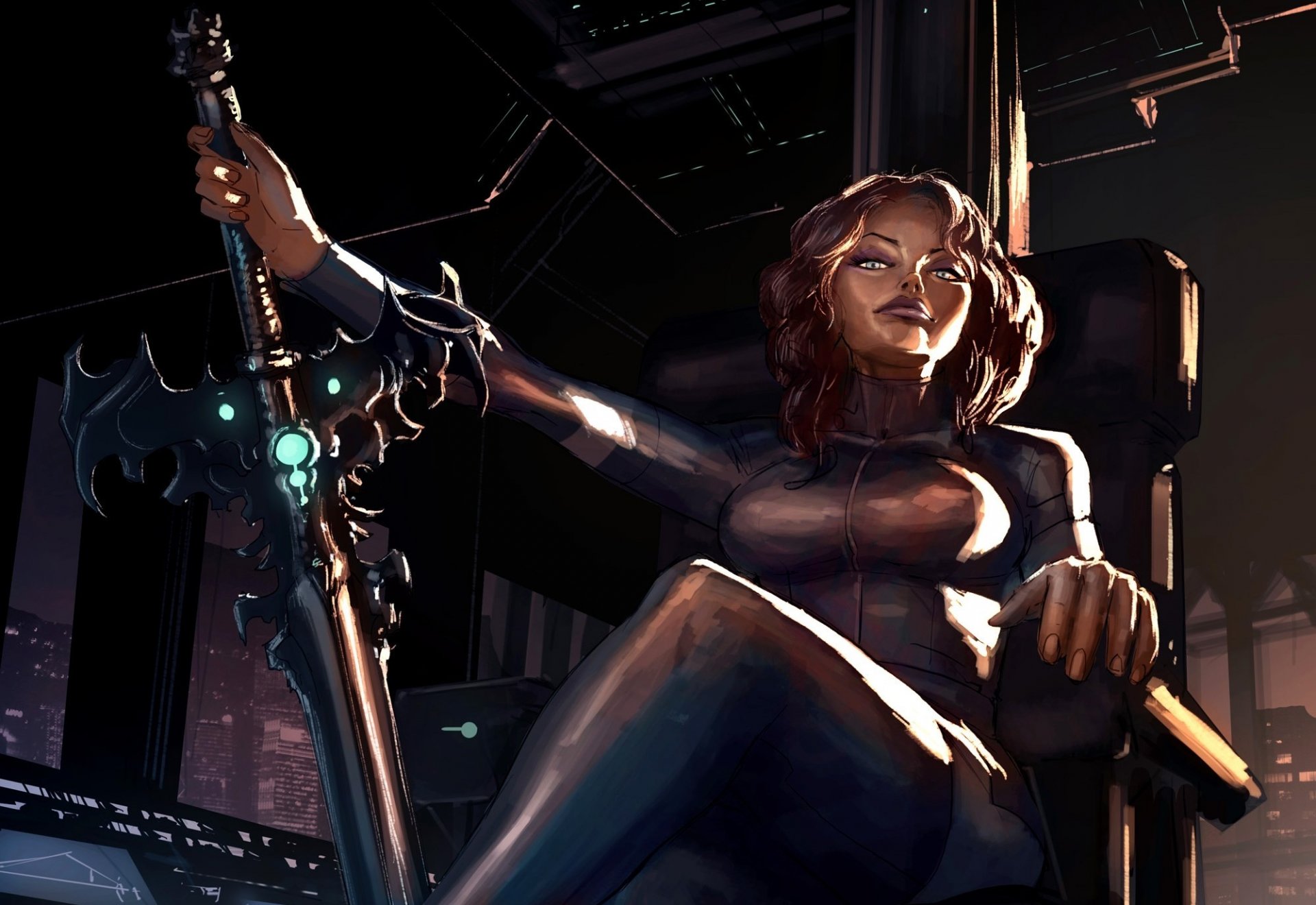Ein Mädchen mit einem Vogel wird mit einem Schwert verteidigt