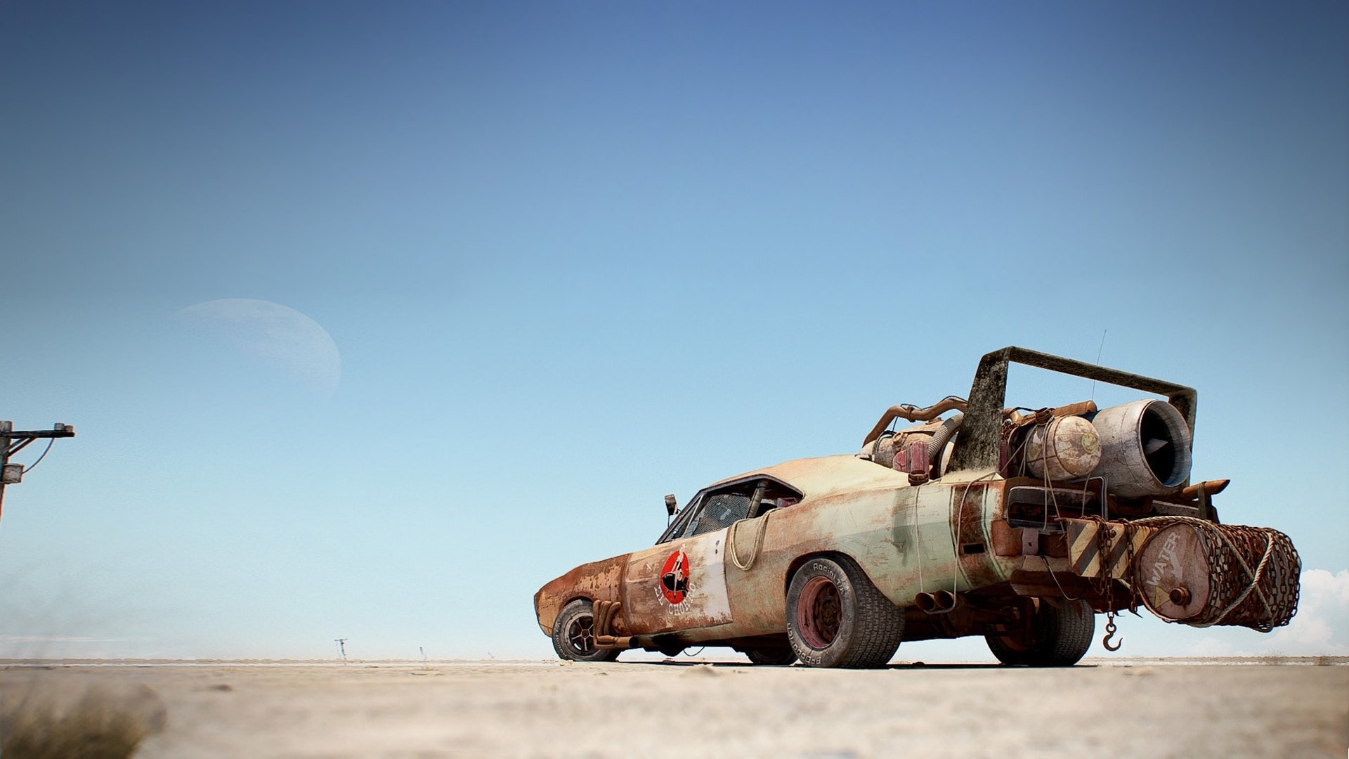 Ein alter Dodge neben einem Baum im Hintergrund des Sonnenuntergangs
