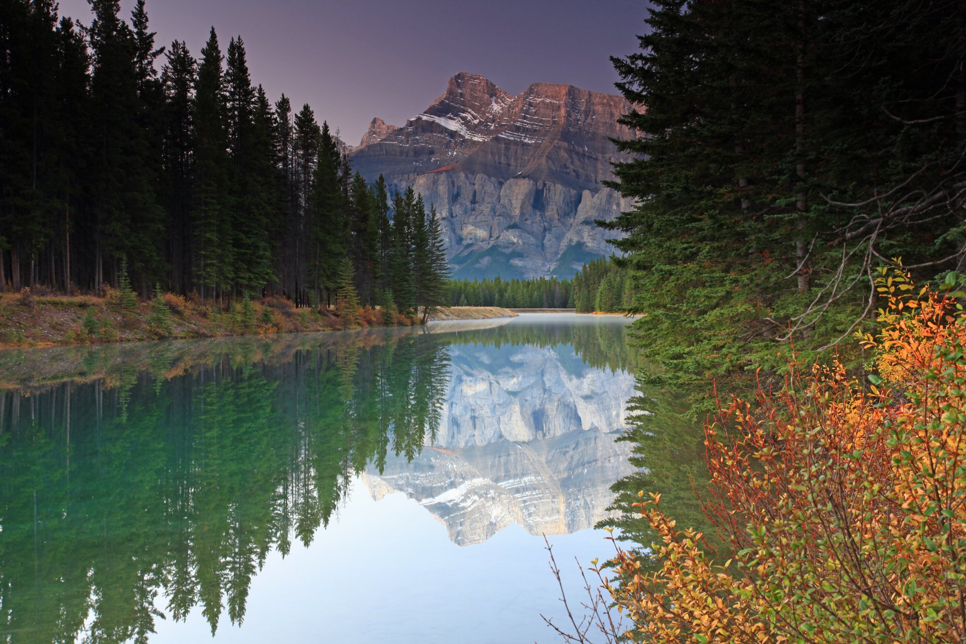 Reflexion im fluss der hellen farben des herbstwaldesReflexion im Fluss der hellen Farben des Herbstwaldes