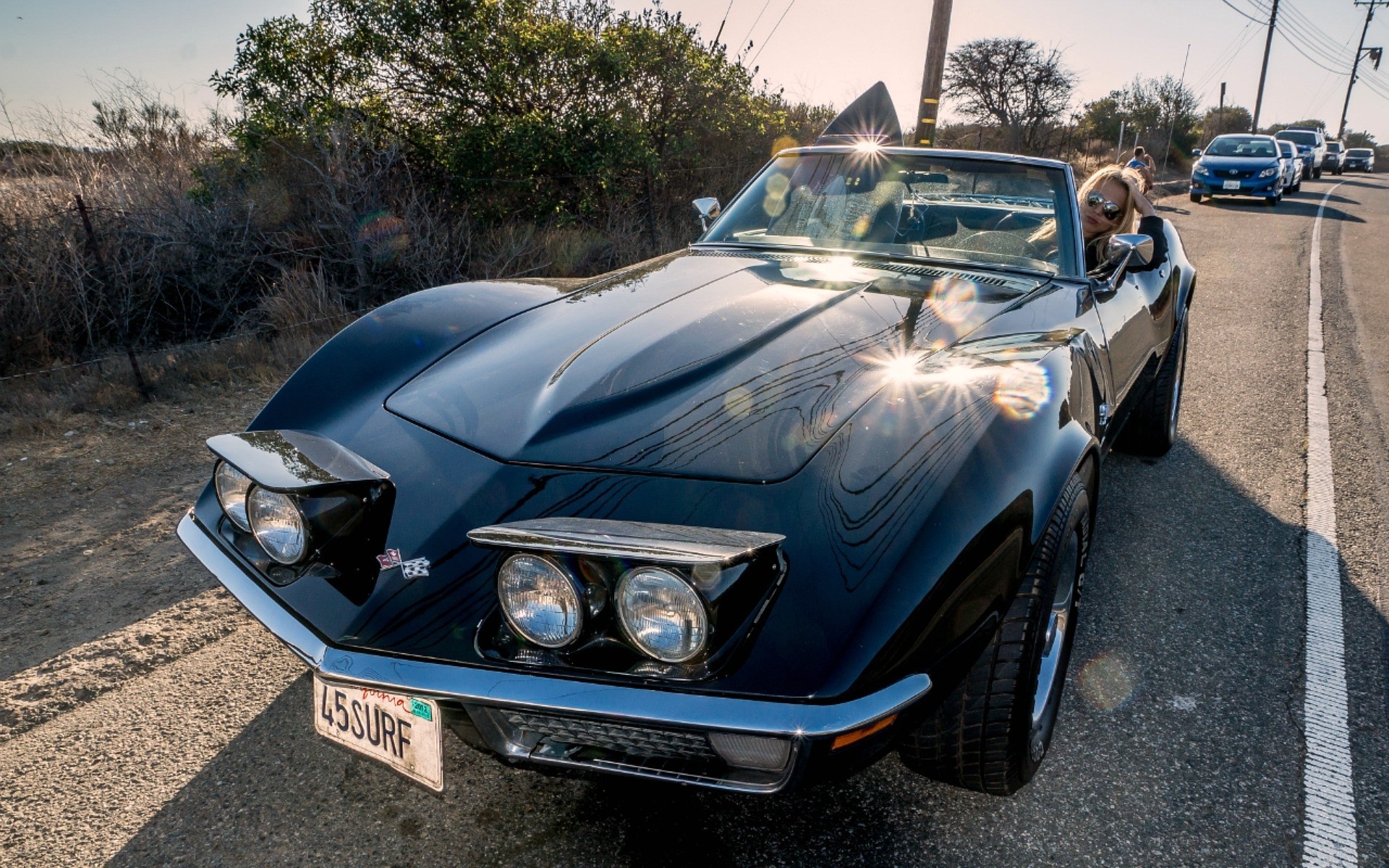 Zwei sportwagen auf der strecke. weiße rennsport- und polizeikorvetteZwei Sportwagen auf der Strecke. Weiße Rennsport- und Polizeikorvette