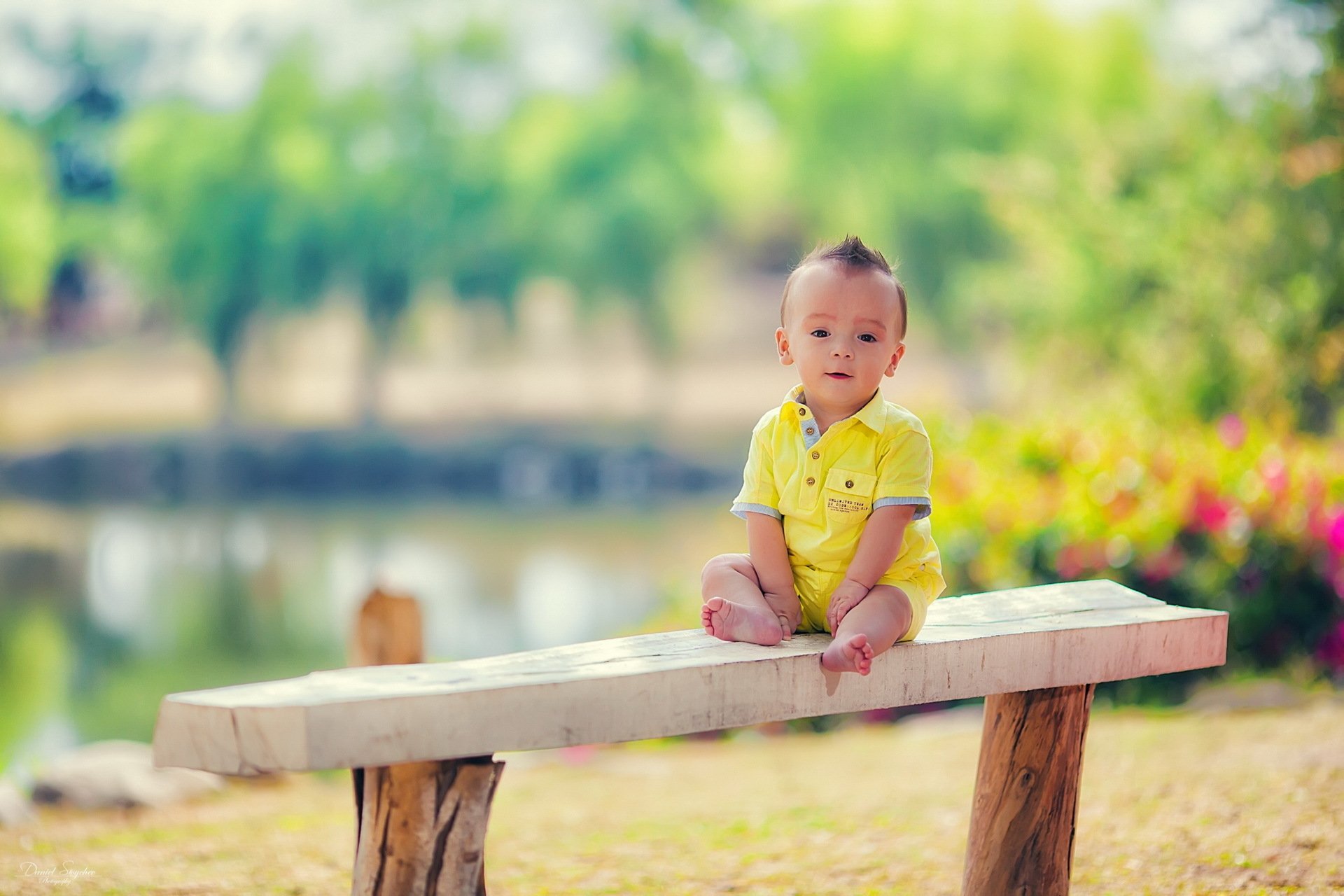 Ein Mann, der allein am Strand auf einer Bank sitzt