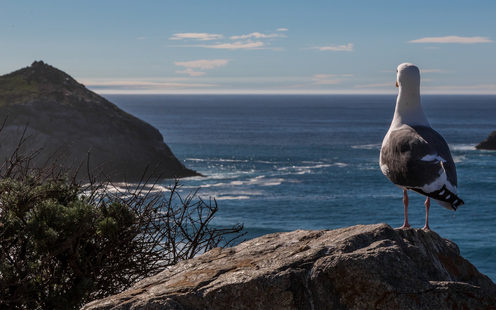 Die möwe steht auf einem stein und blickt auf das meerDie Möwe steht auf einem Stein und blickt auf das Meer