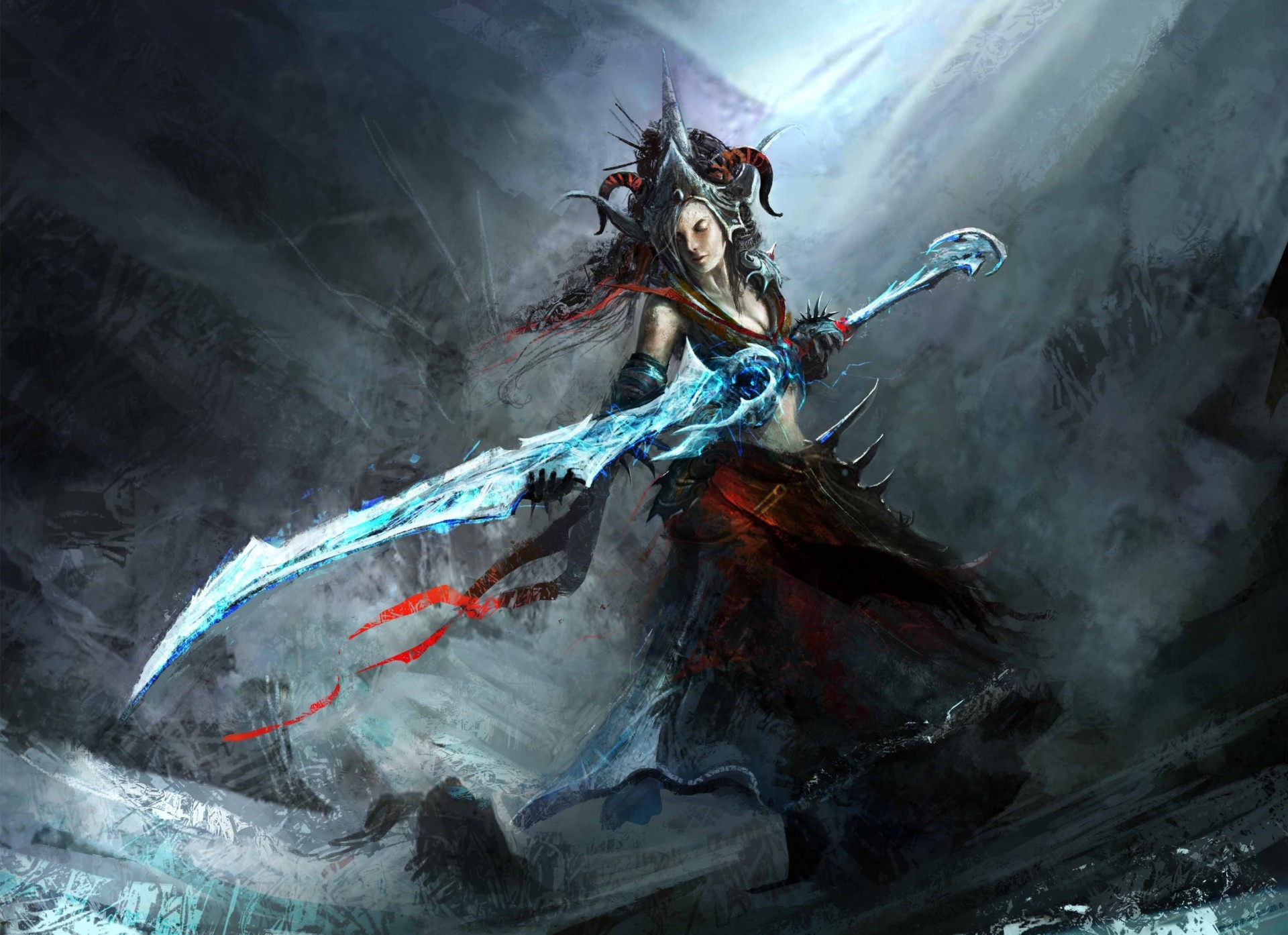 Kunst Mädchen mit Hornkrone und Schwert