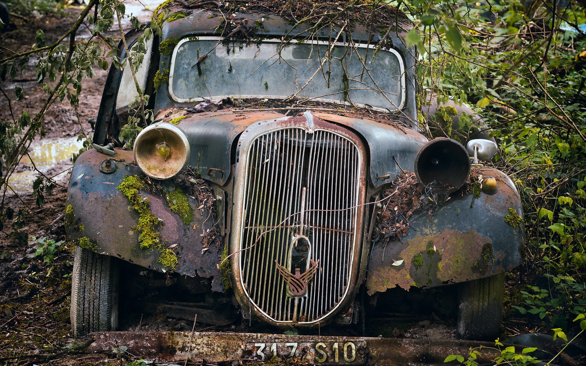 Alles vergessene alte Frau, die mit Moos bedeckt ist