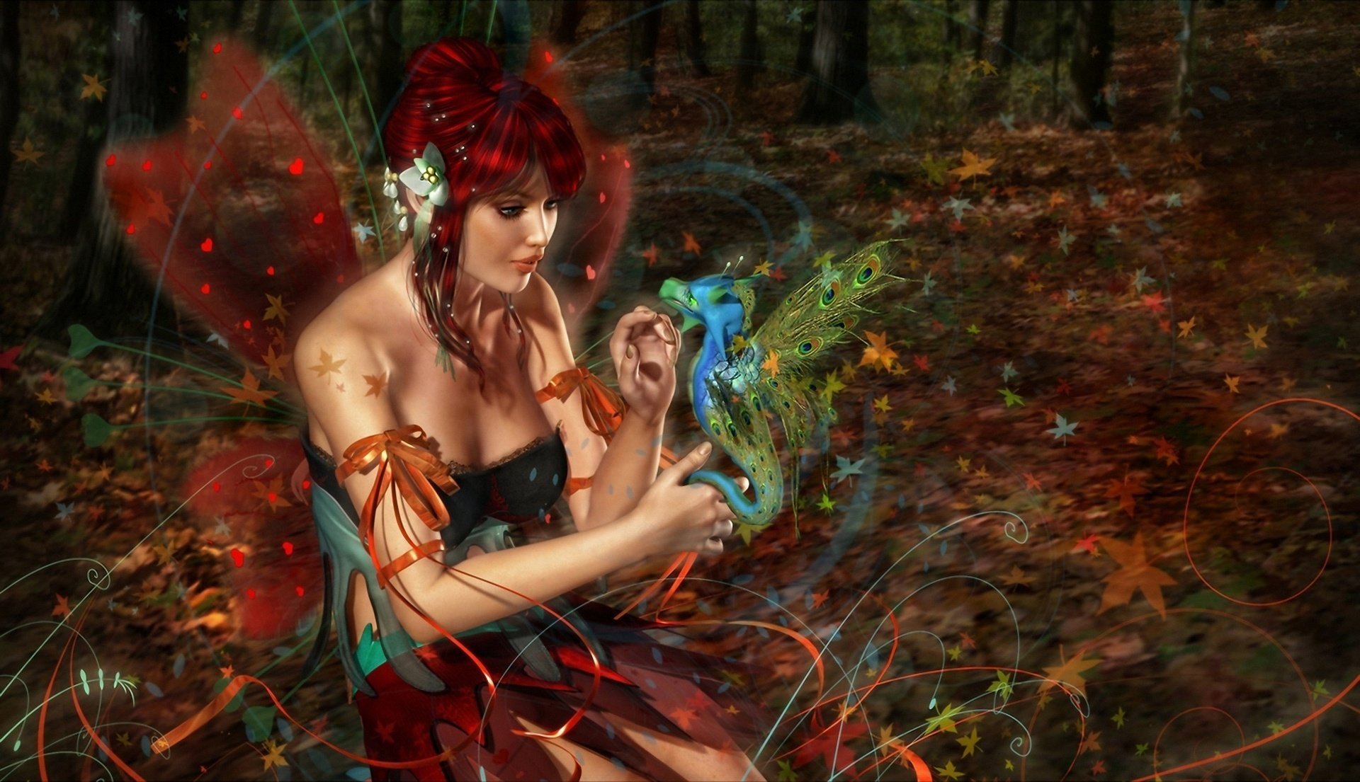 Mädchen mit Schnitten auf dem Hintergrund der Drachen