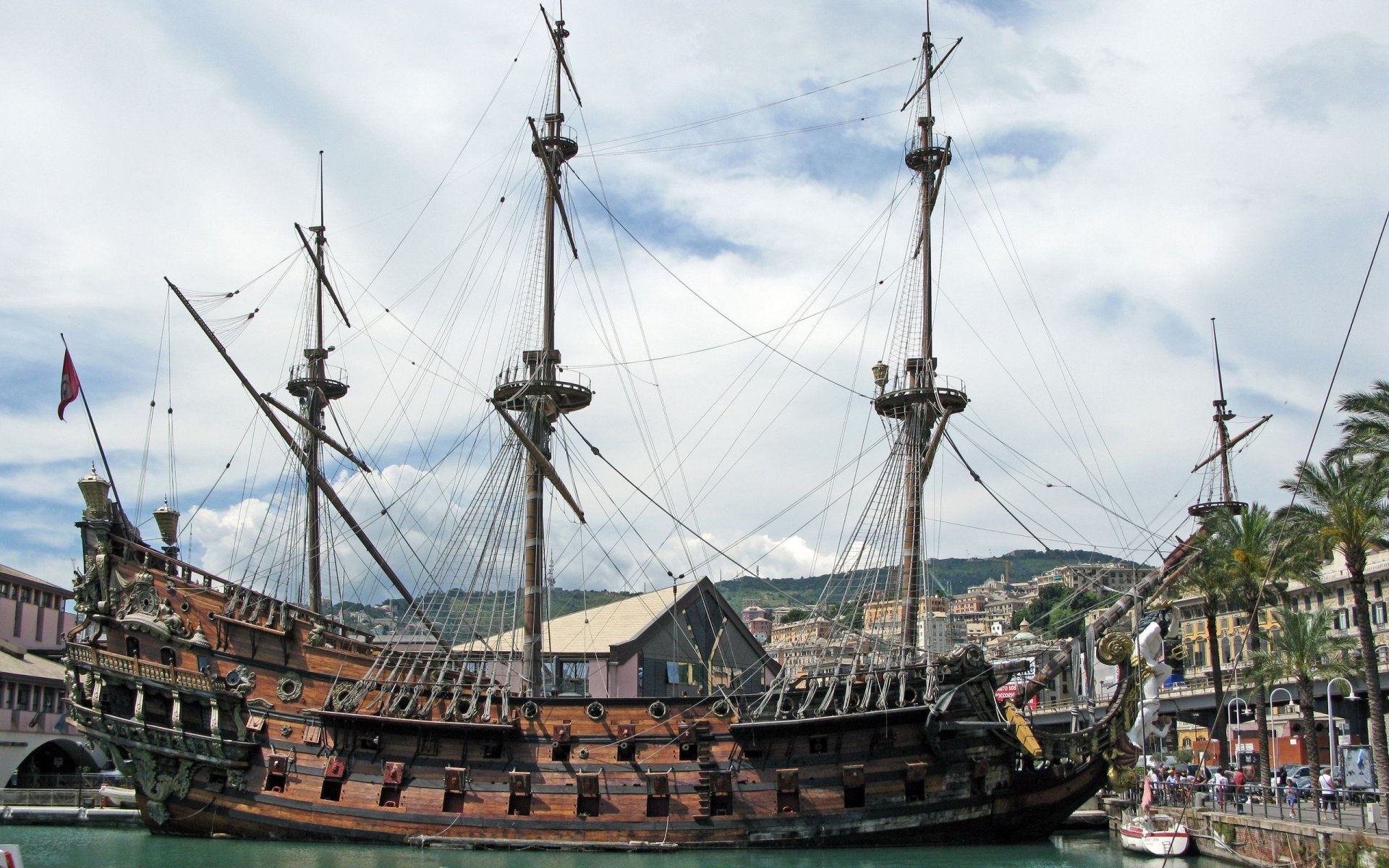 Schönes Dreimastschiff und Meer