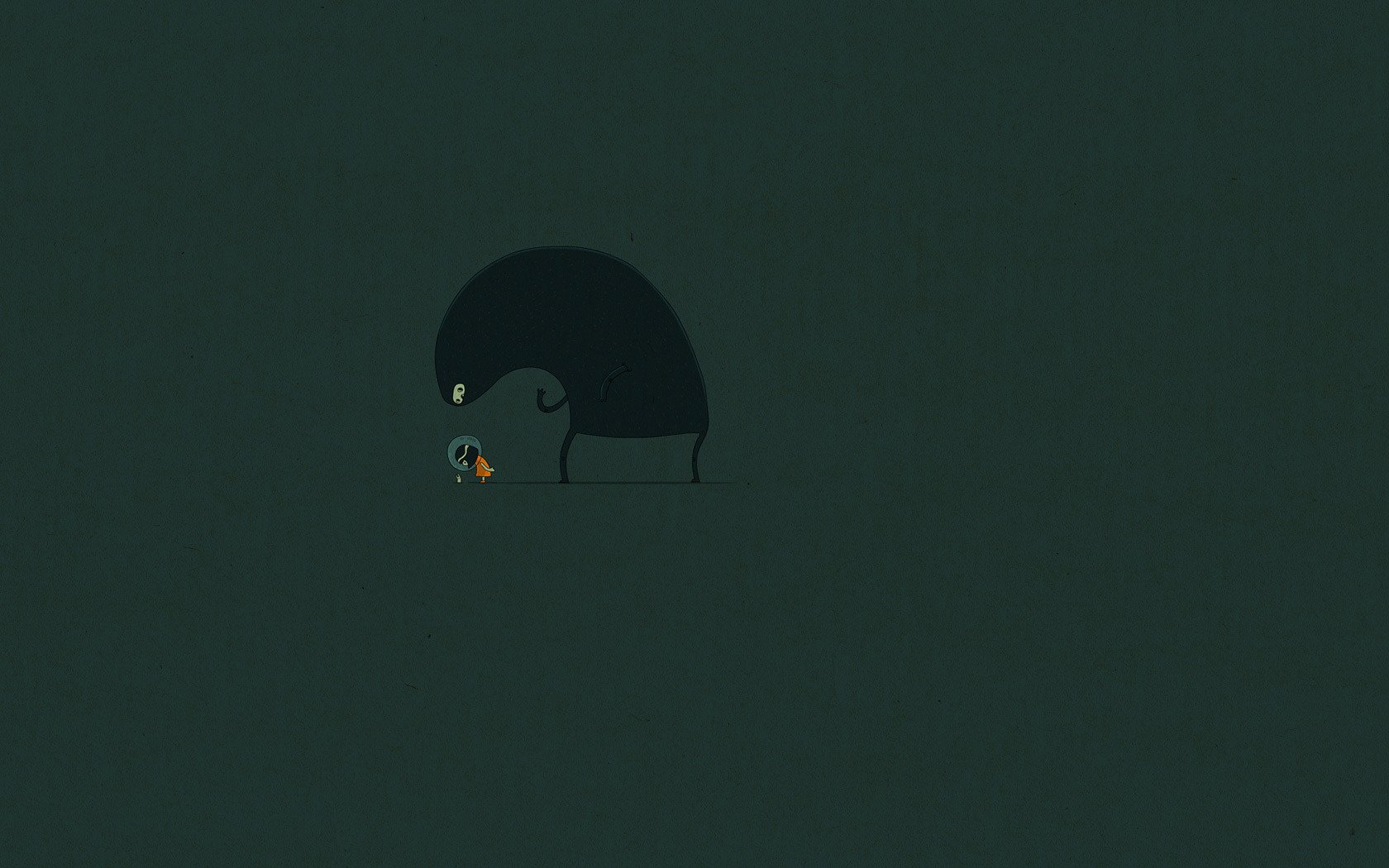 Auf grünem Hintergrund ein schwarzes Wesen, kleines Mädchen. Es gibt einen Minimalismus