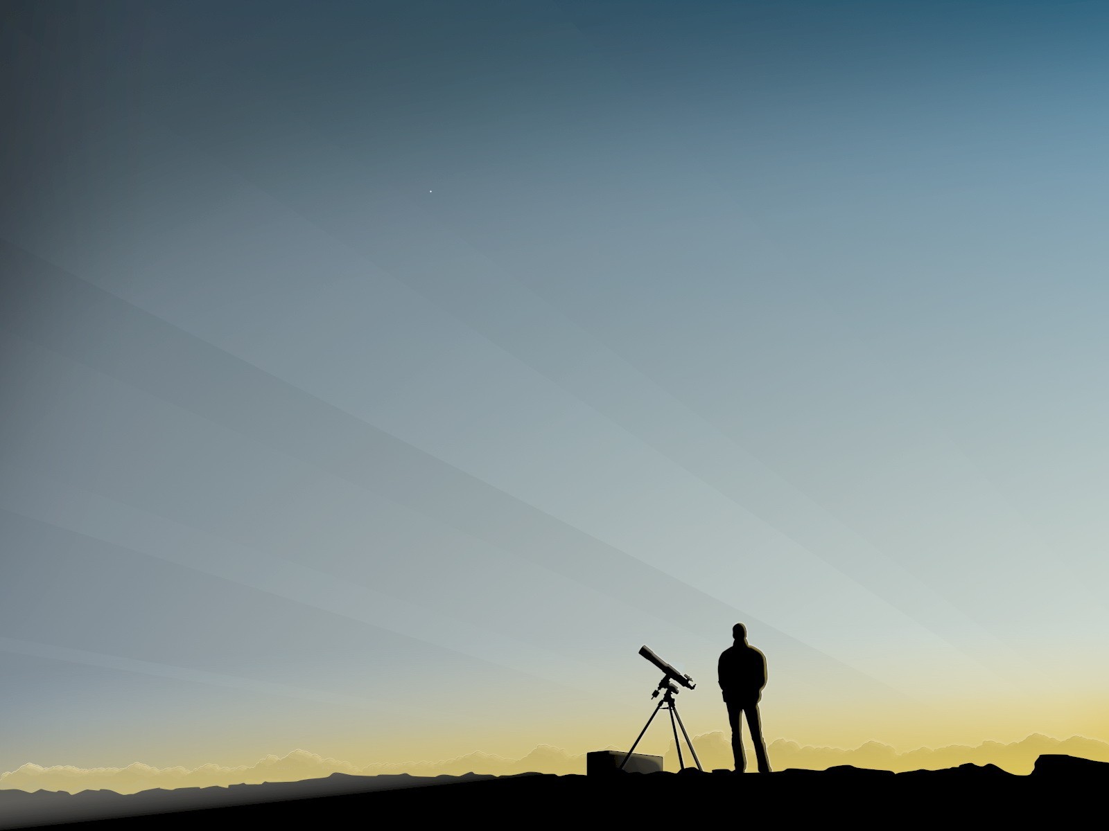 Ein Mann am Horizont steht mit einem Teleskop