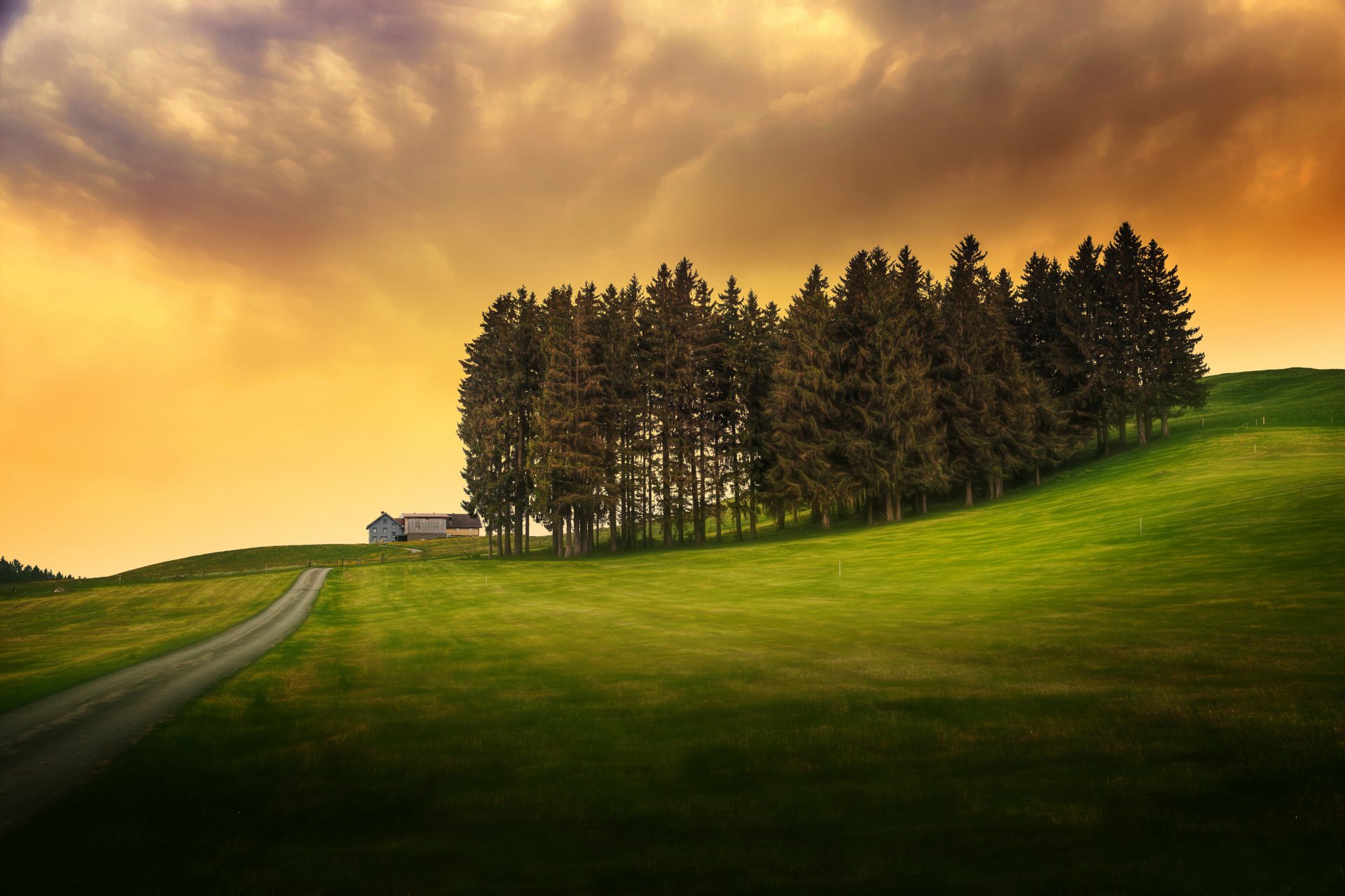 Ein grünes Feld , eine Insel von Bäumen