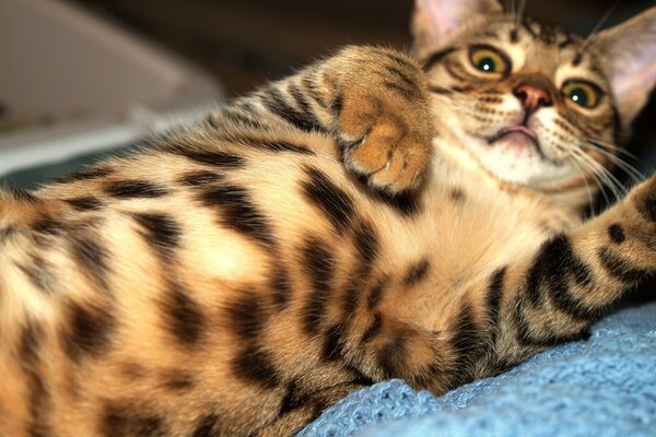 Eine Katze mit grünen Augen sitzt und schaut nach oben