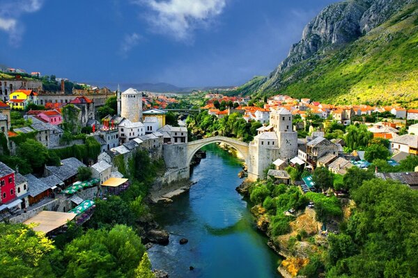Eine Stadt in den Bergen, eine Brücke über den Fluss