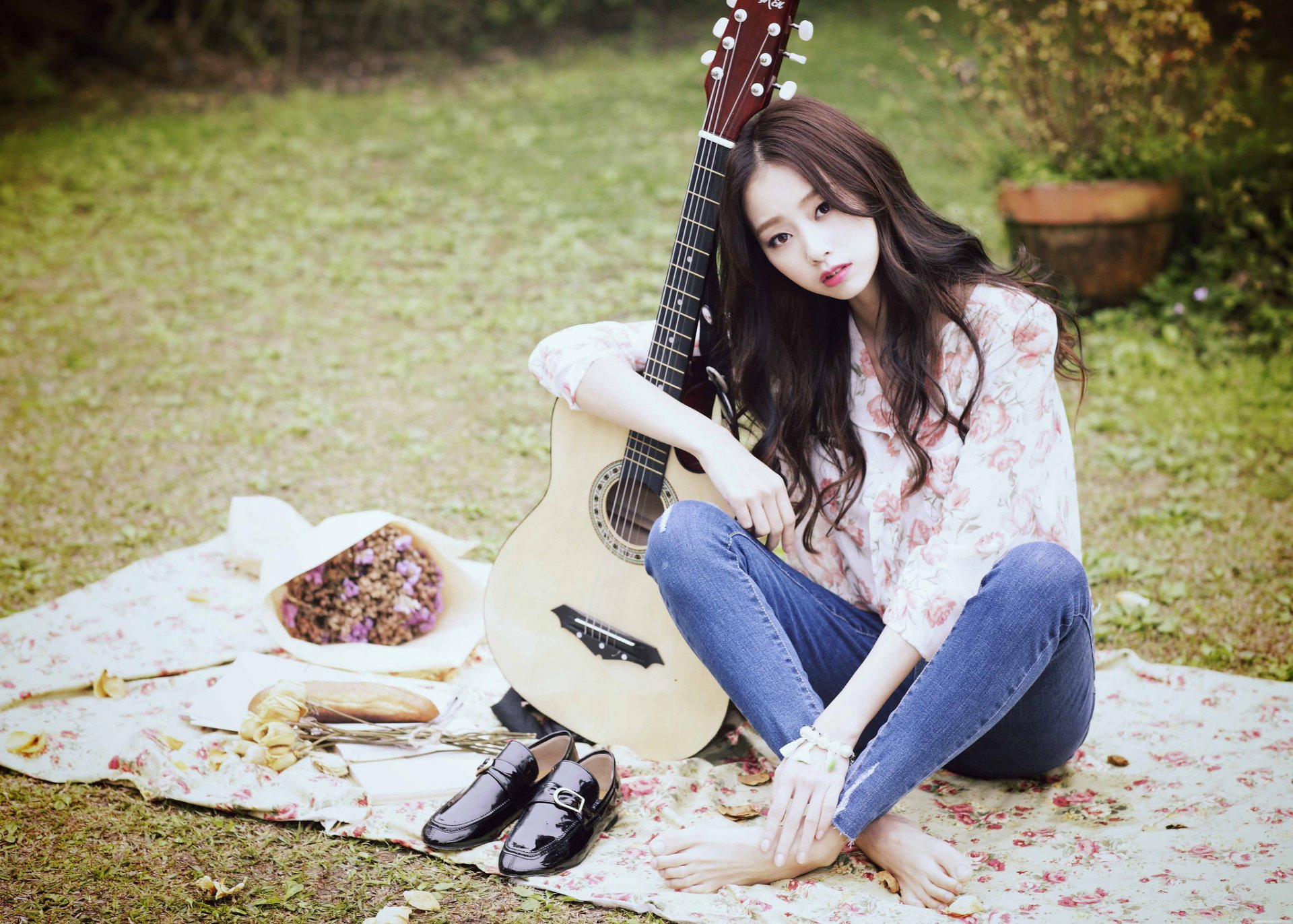 Einsame Musikerin in der Natur