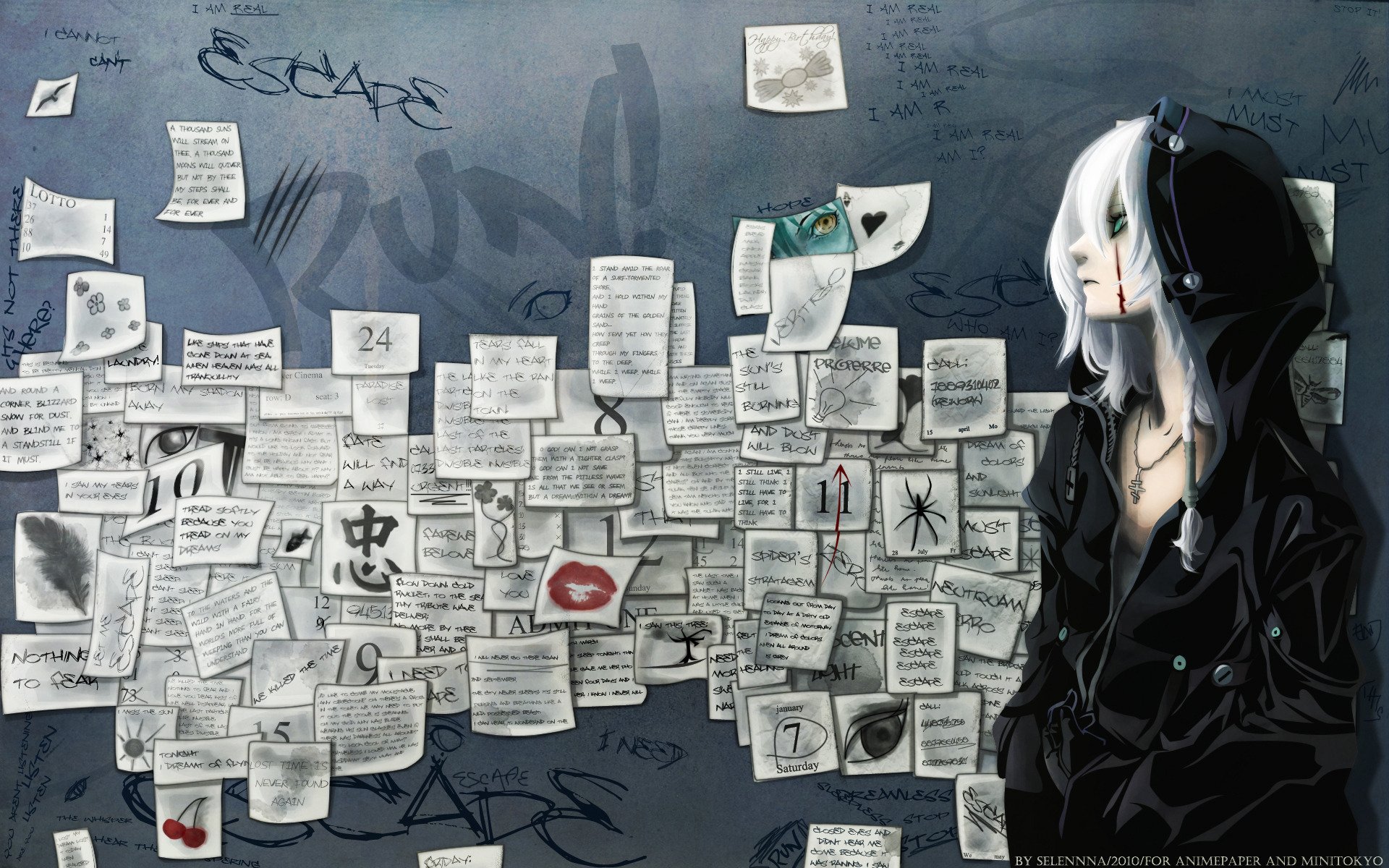 Das Mädchen aus dem Anime «Der Adept des heiligen Schlosses» steht mit Zettel an der Wand