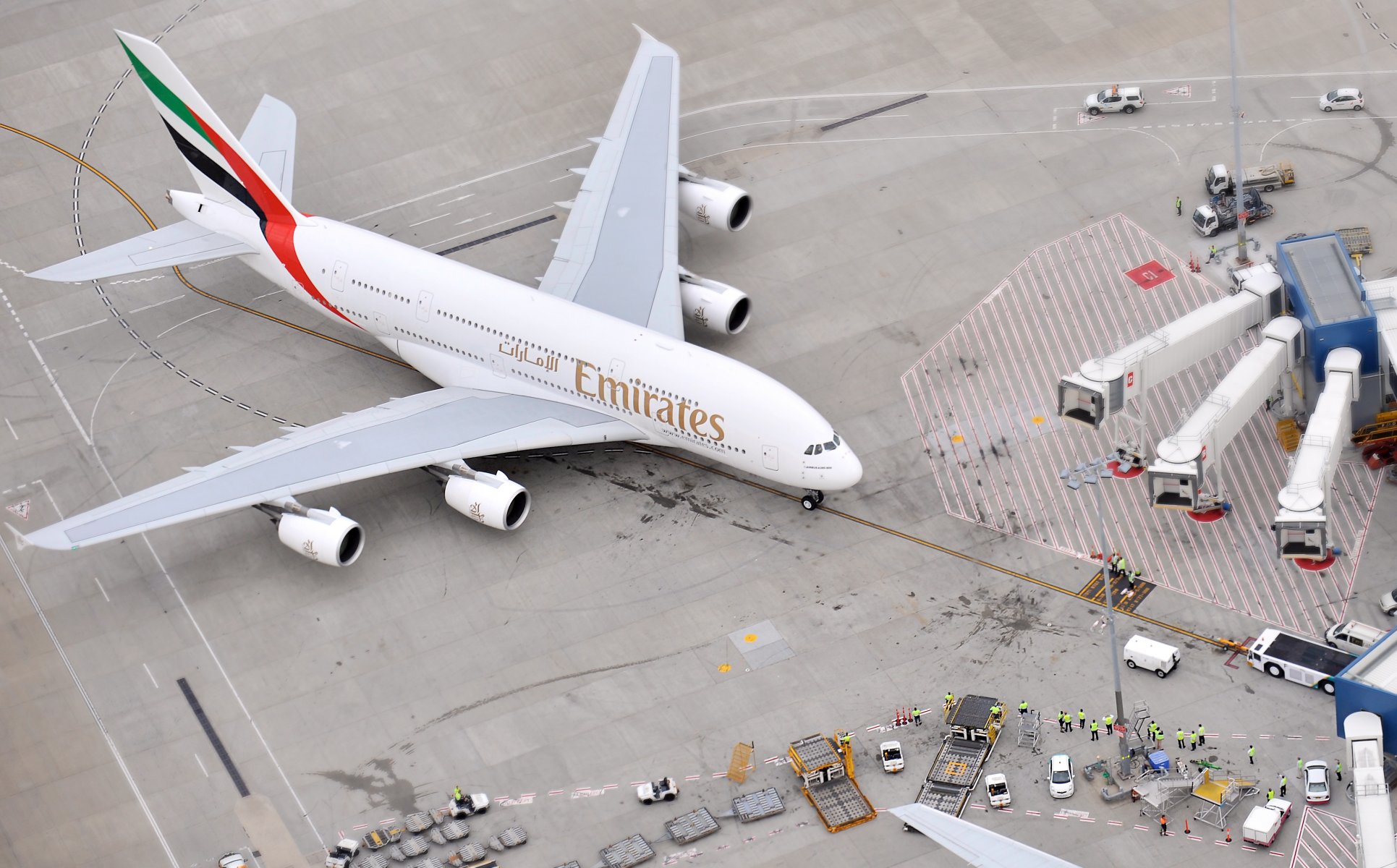 Emirates-Passagierflugzeug steht am Flughafen