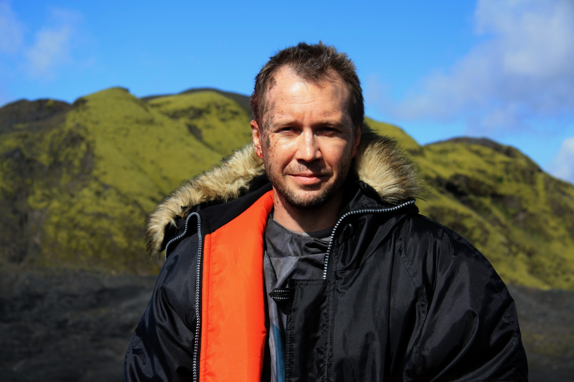 Schauspieler Jewgeni mironov lächelt mit einem schmutzigen Gesicht die Zuschauer an