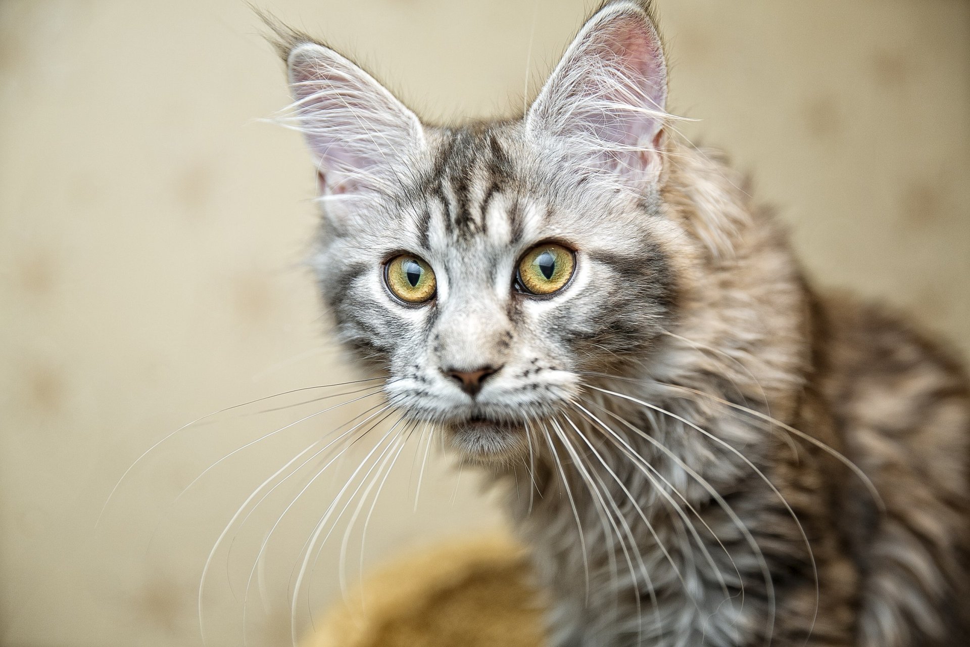 Eine Katze mit einem ungewöhnlichen Blick in Grautönen