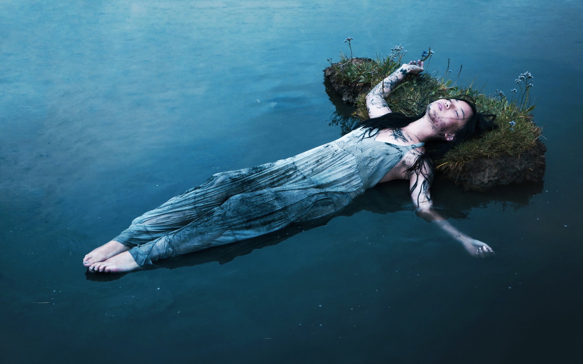 Das Mädchen im Sarophan ruht sich auf dem Wasser aus. Indus