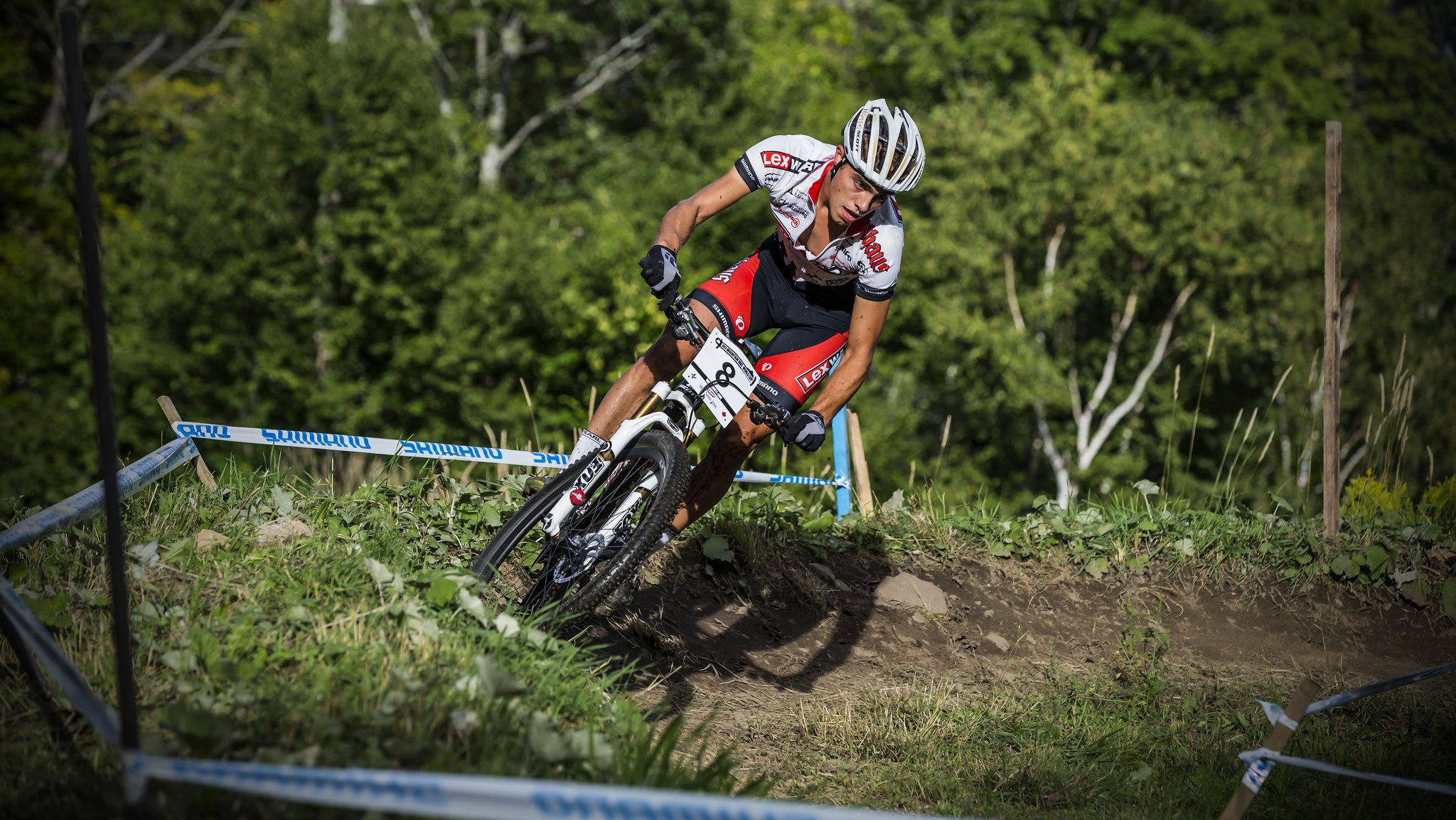 Hindernisse im Wald mit dem Fahrrad, Stunts