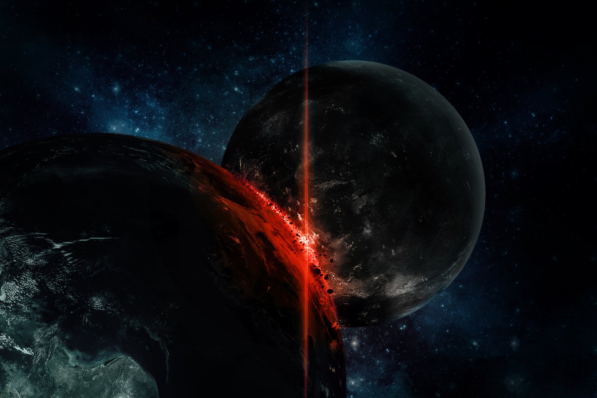 Fantastische Kollision von Planeten mit einer hellen Explosion