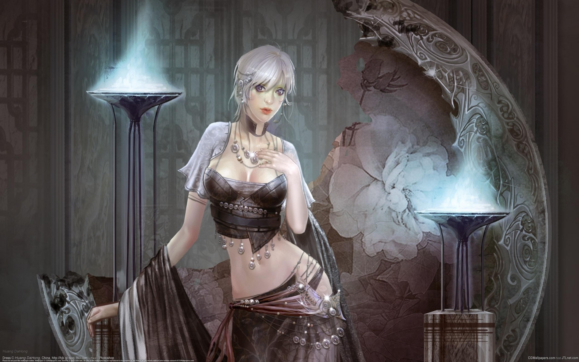 Fantasy-Mädchen mit einem Phoenix und einem Leuchtturm