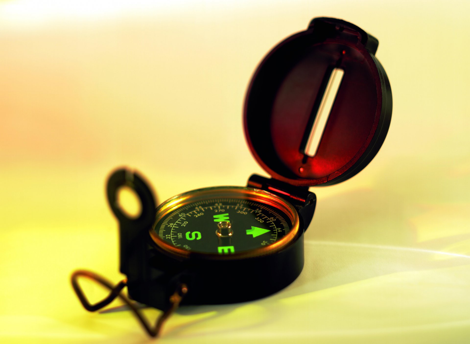 Mechanischer Kompass mit leuchtenden Buchstaben
