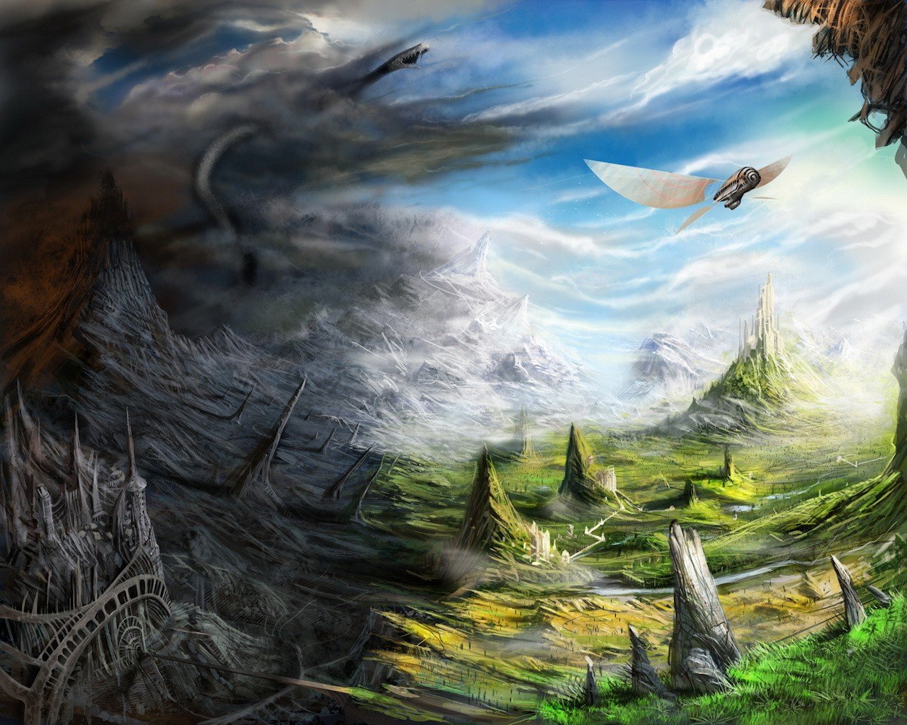 Zeichnung mit Fantasiewelt und Grün