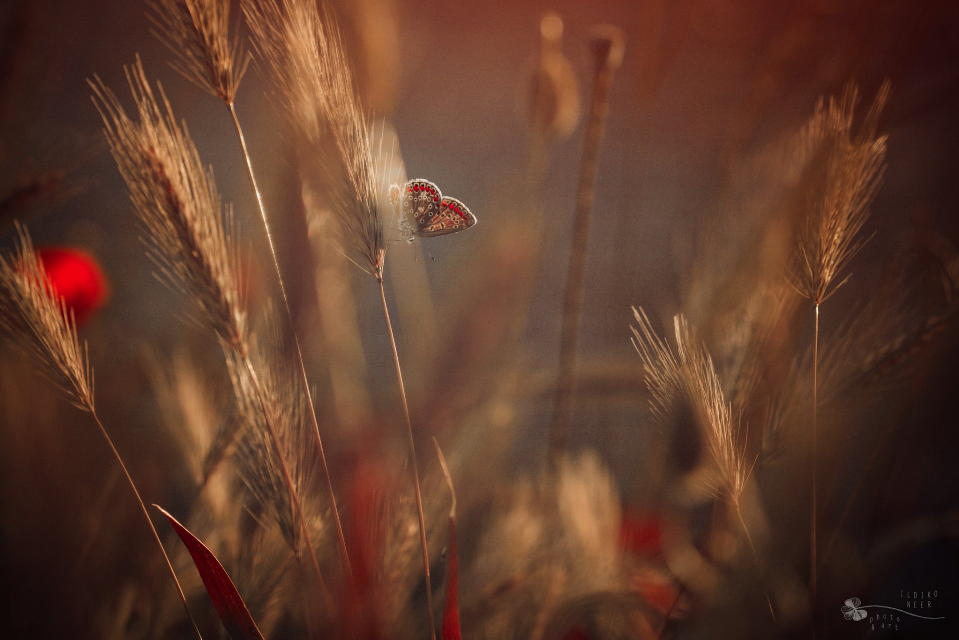 Ein schmetterling, der auf den ähren des weizens sitztEin Schmetterling, der auf den Ähren des Weizens sitzt