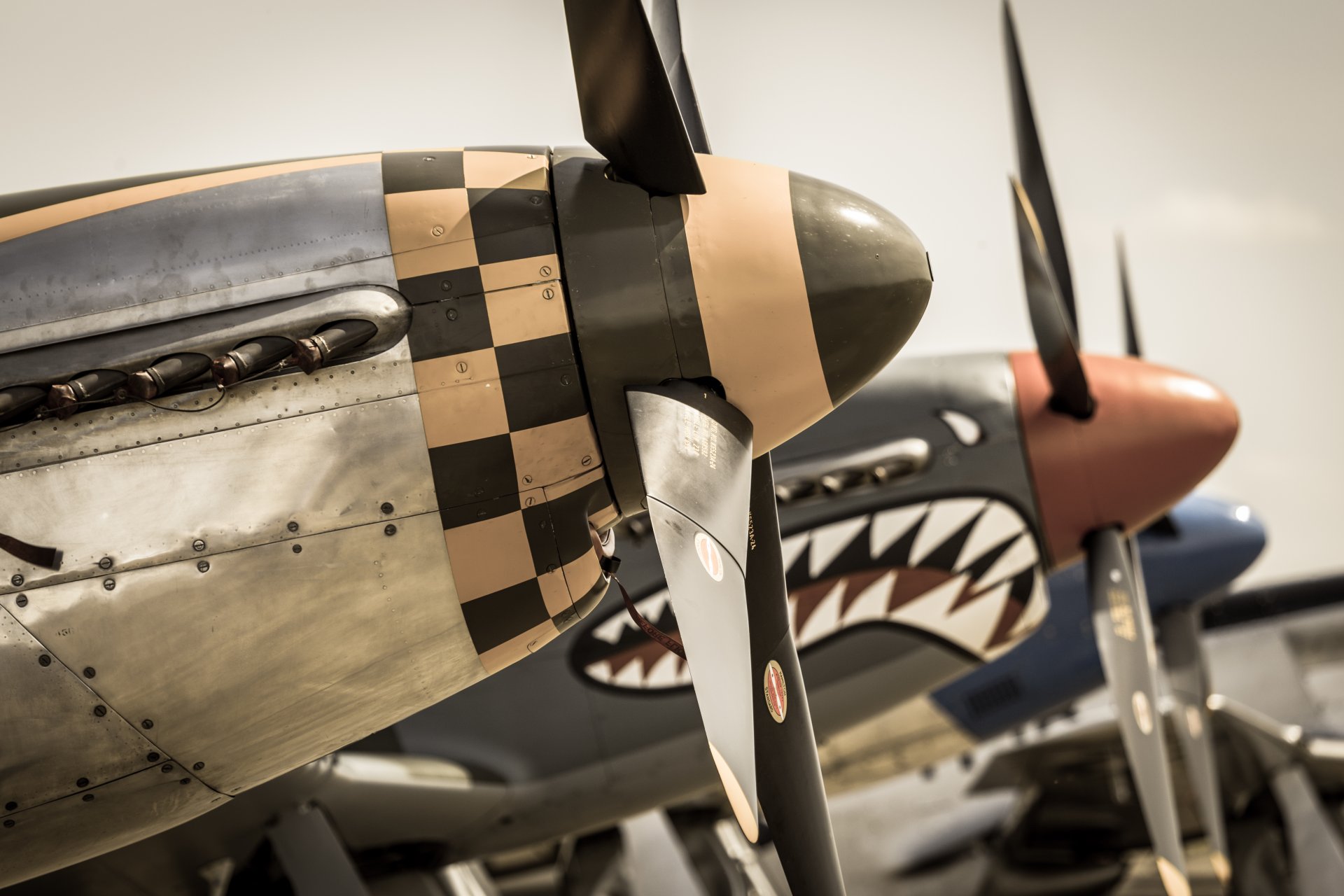 Auf dem Flugplatz stehen schöne Kampfflugzeuge mit starken Propellern