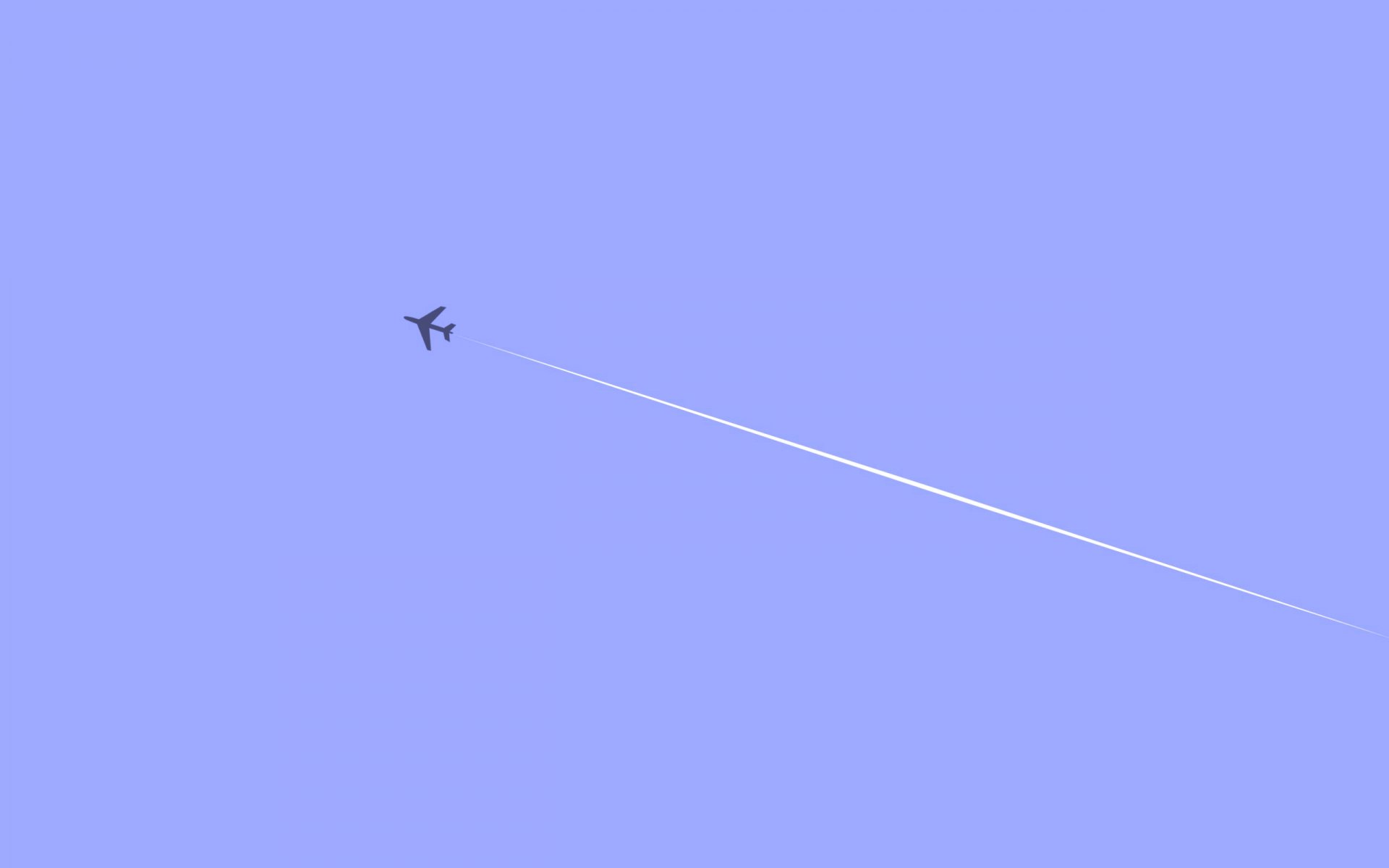 Das Flugzeug fliegt in den blauen Himmel und hinterlässt eine weiße Spur