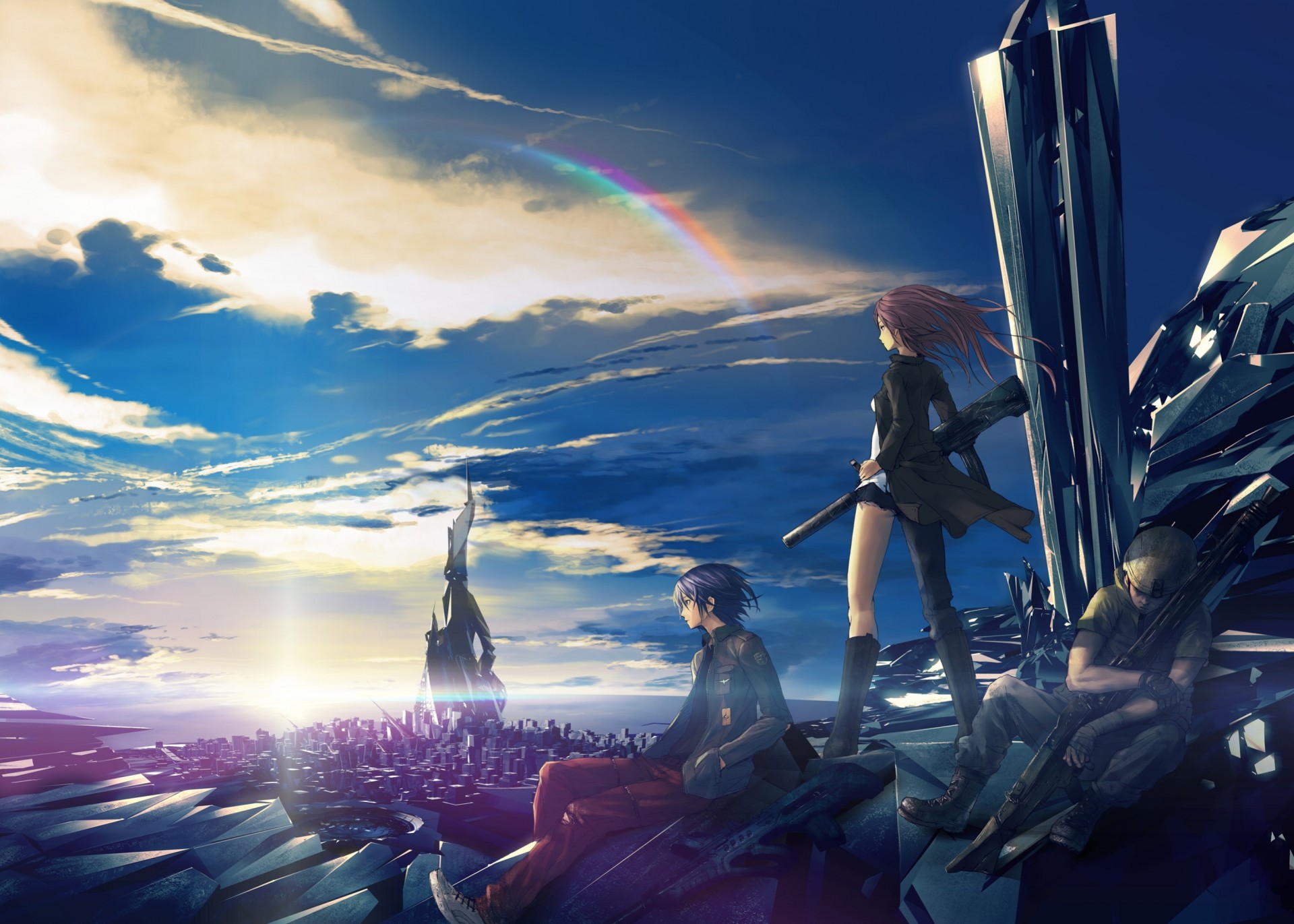 Mädchen mit Waffen in einer fliegenden Festung