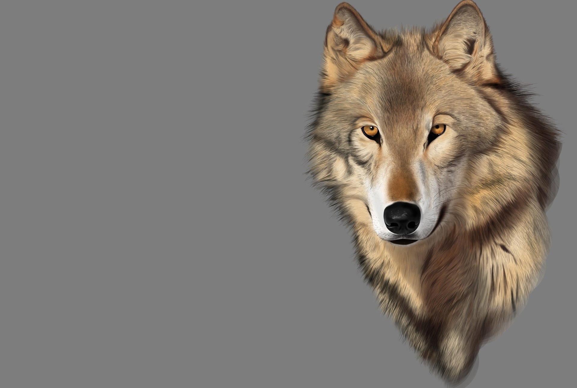Zeichnung eines Wolfes auf blauem Hintergrund