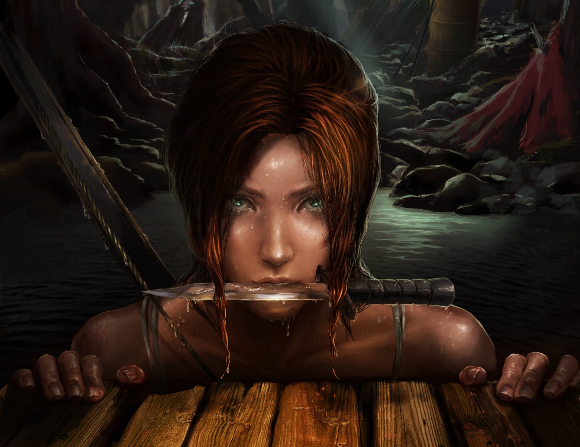 Die furchtlose Lara Croft in einer dunklen Höhle