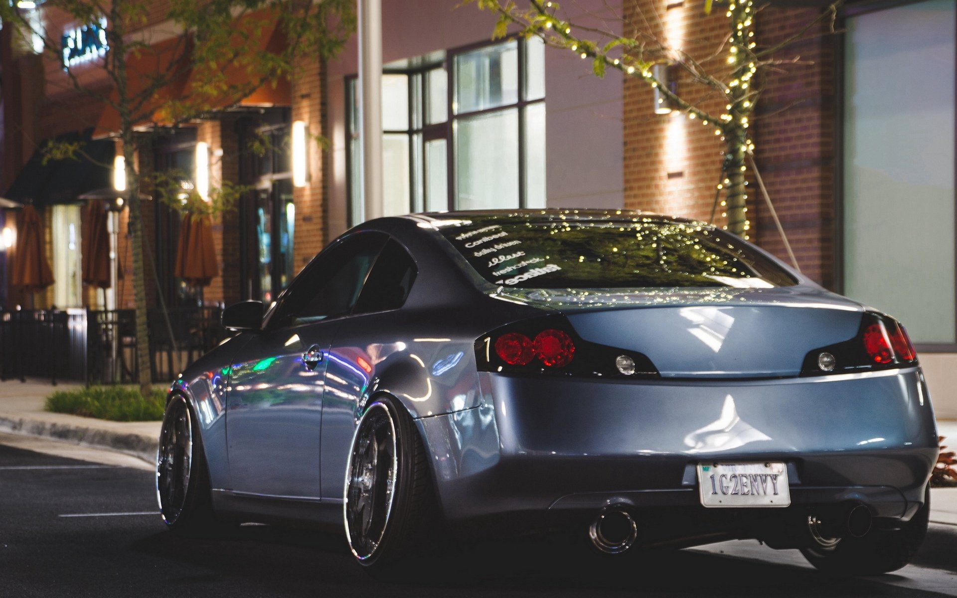 Getuntes infiniti-auto mit kupferfarbenen scheibenGetuntes Infiniti-Auto mit kupferfarbenen Scheiben