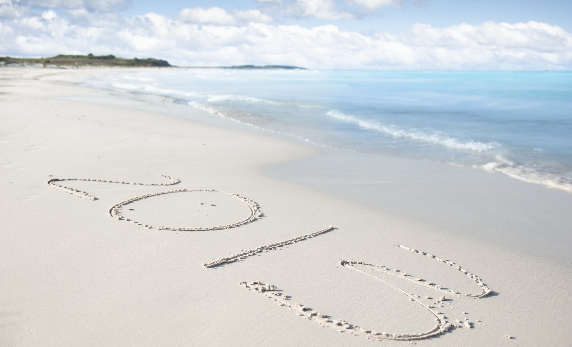Der hund liegt am strand im sand, schläft und träumtDer Hund liegt am Strand im Sand, schläft und träumt
