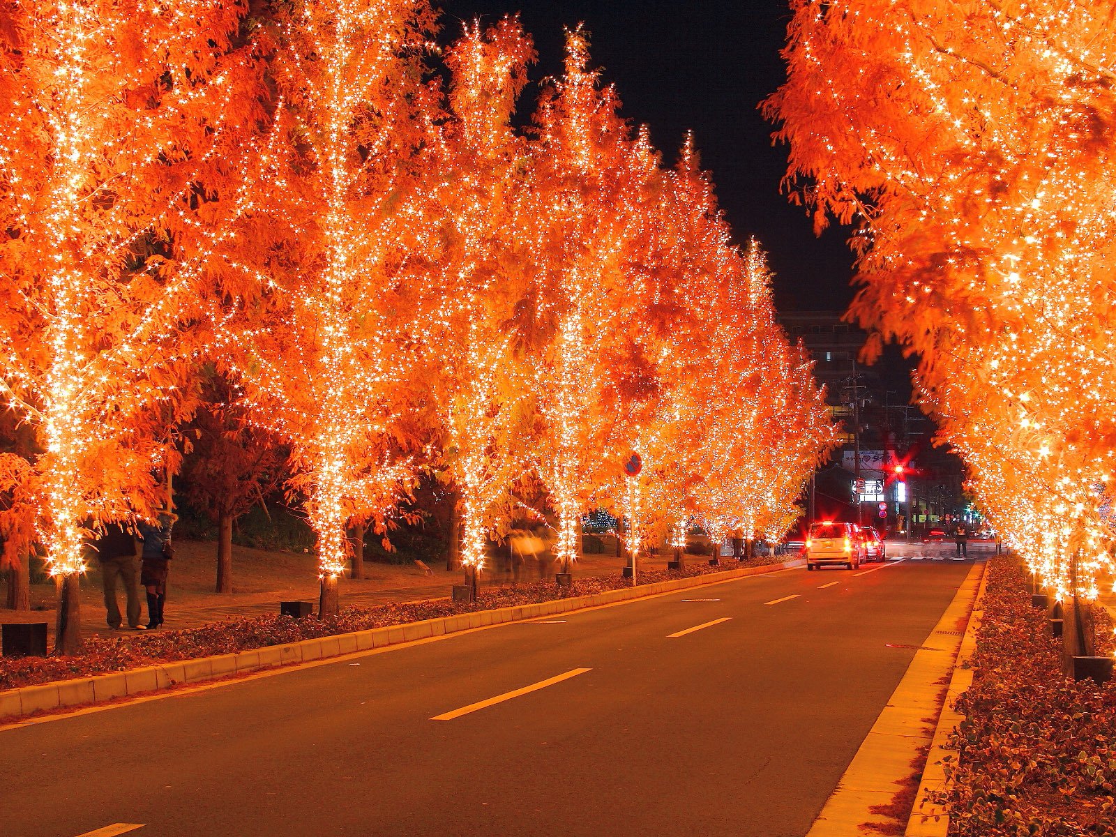Der Weg im Herbstpark ist mit Blättern bedeckt