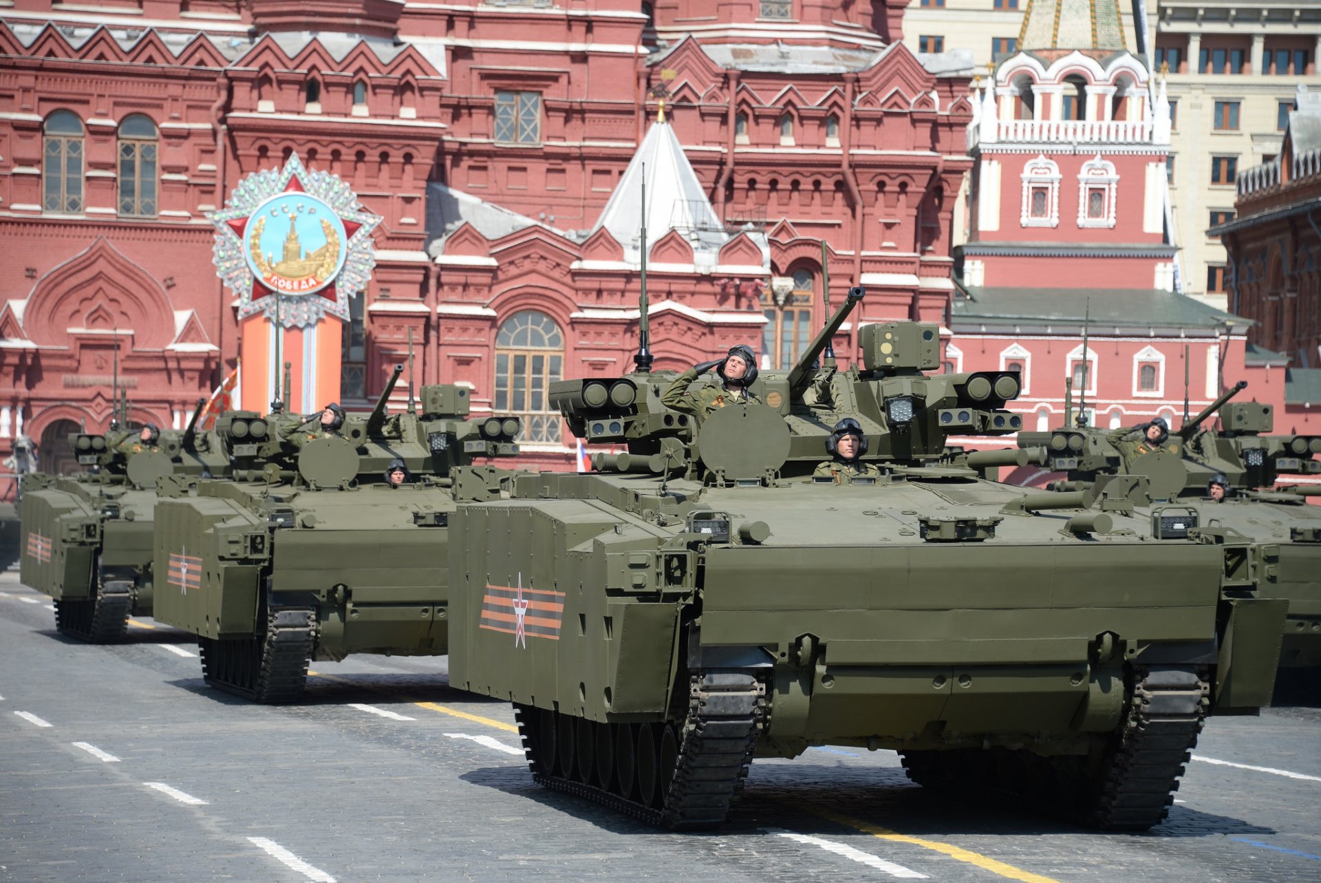 Infanterie-kampffahrzeuge fahren über den roten platzInfanterie-Kampffahrzeuge fahren über den Roten Platz