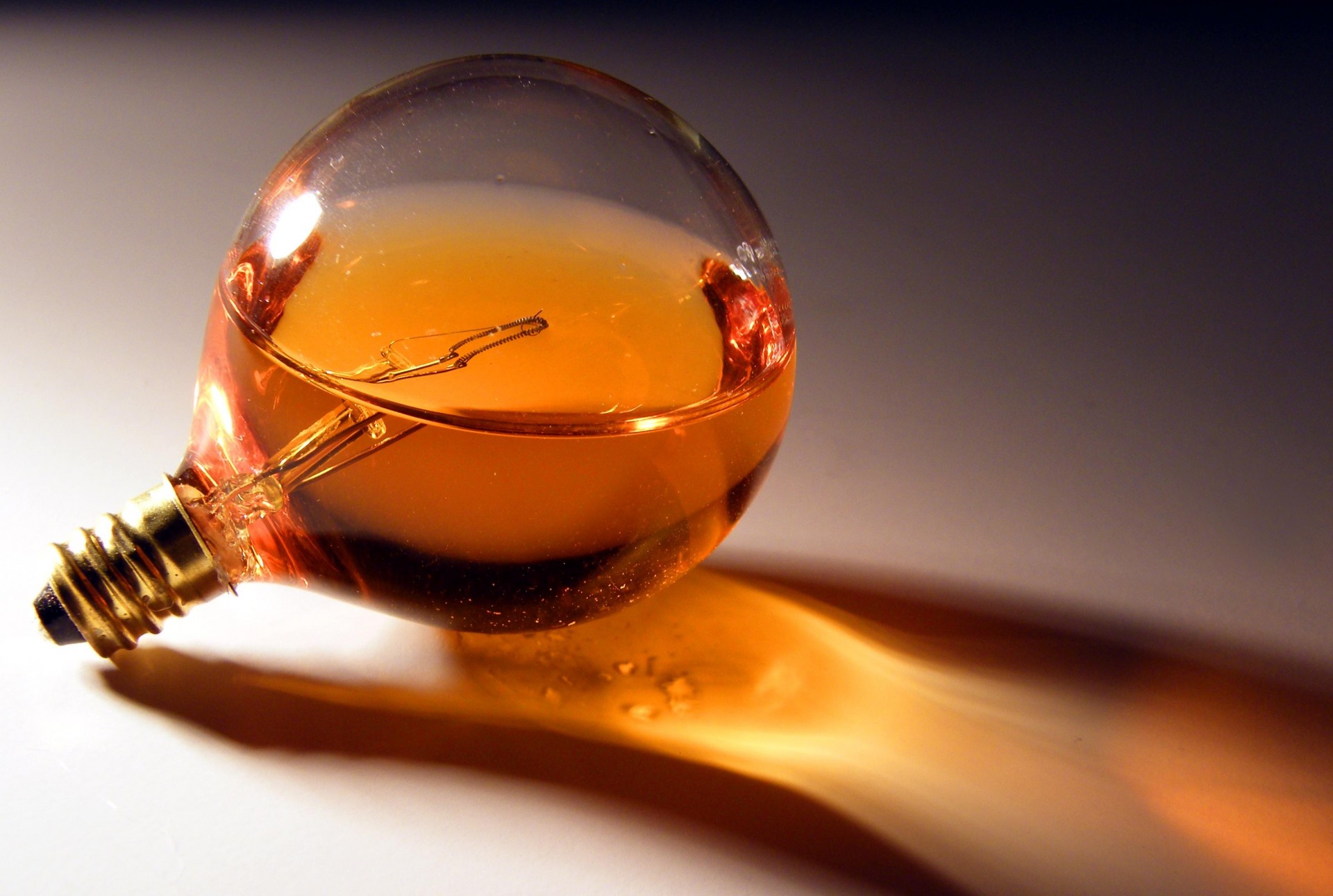 Im Inneren der Glühbirne ist Öl und ein Schatten fällt darauf
