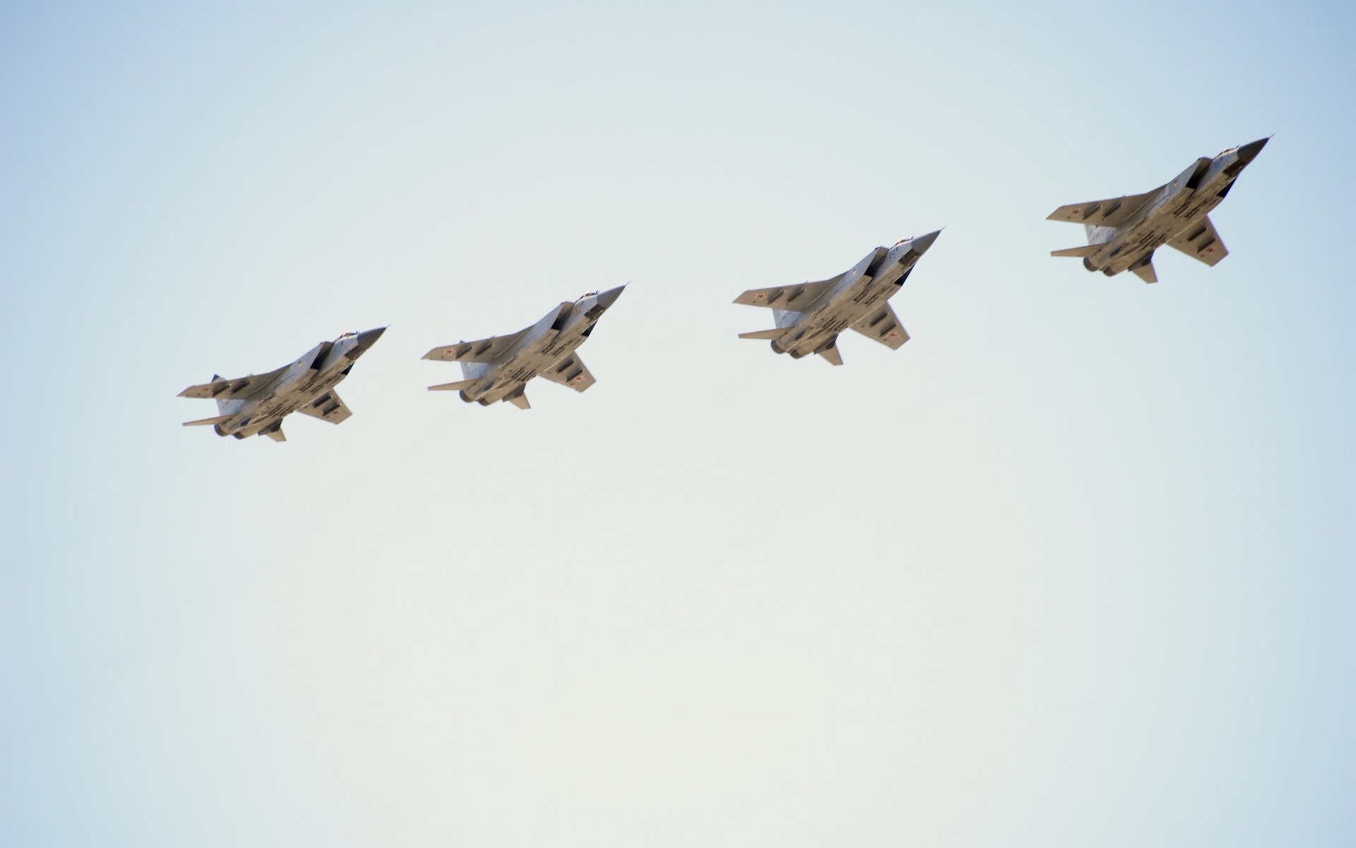 Mig-31-flugzeuge fliegen in der luftshow am himmelMig-31-Flugzeuge fliegen in der Luftshow am Himmel