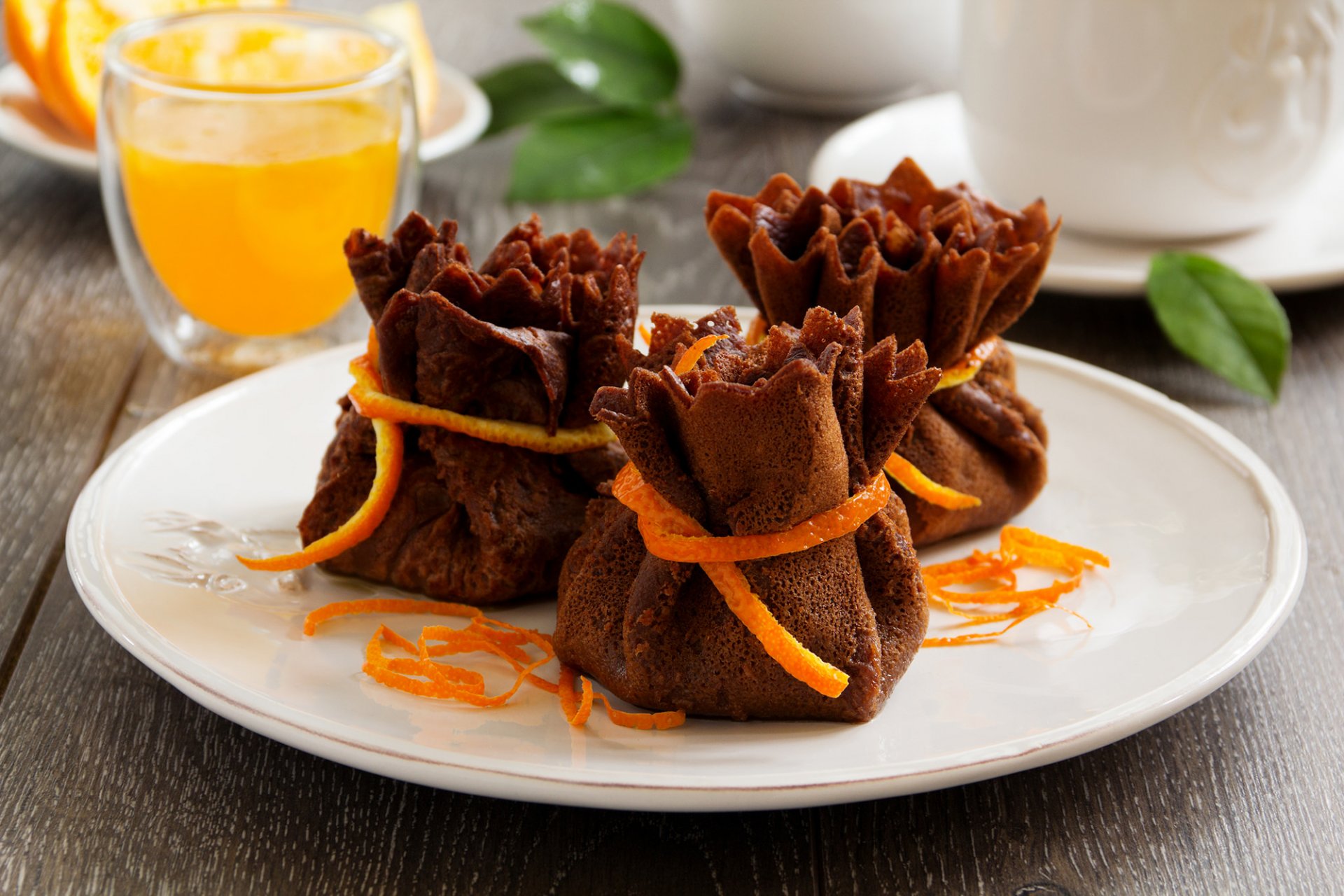Pfannkuchentüten mit Füllung und ein Glas Saft