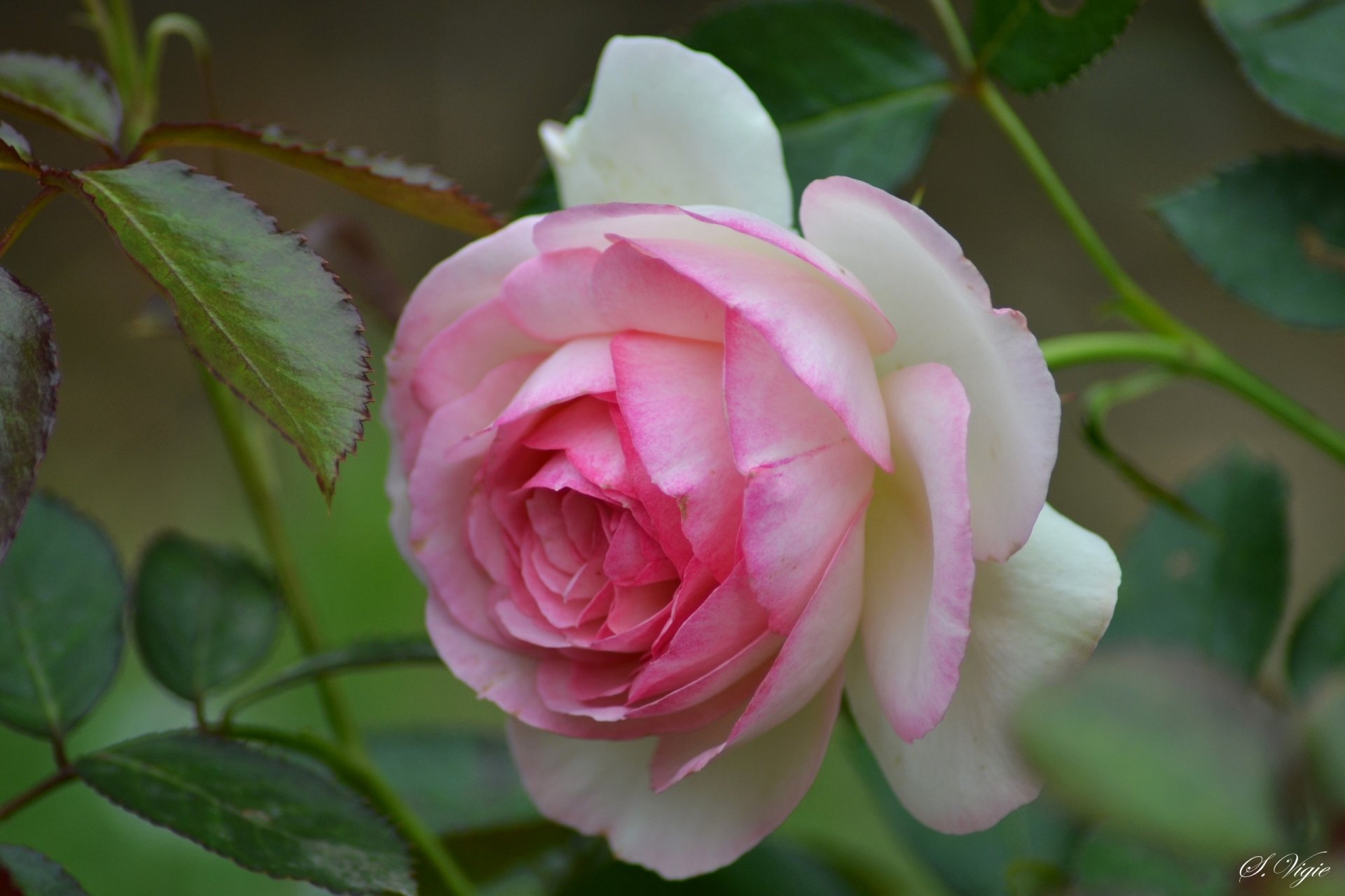 Knospe einer rosa und weißen Rose