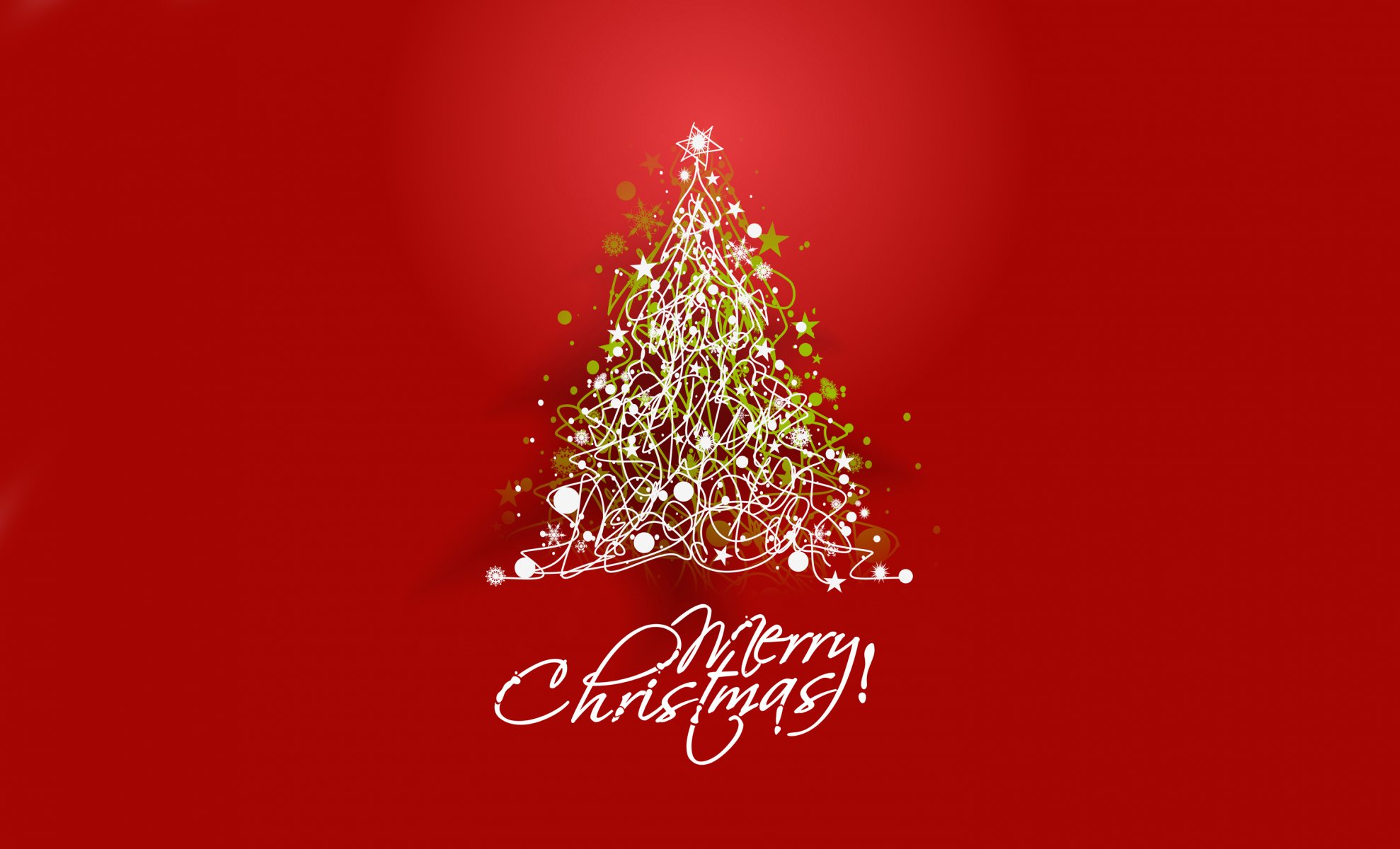 Goldener Weihnachtsbaum auf rotem Grund mit Glückwunsch