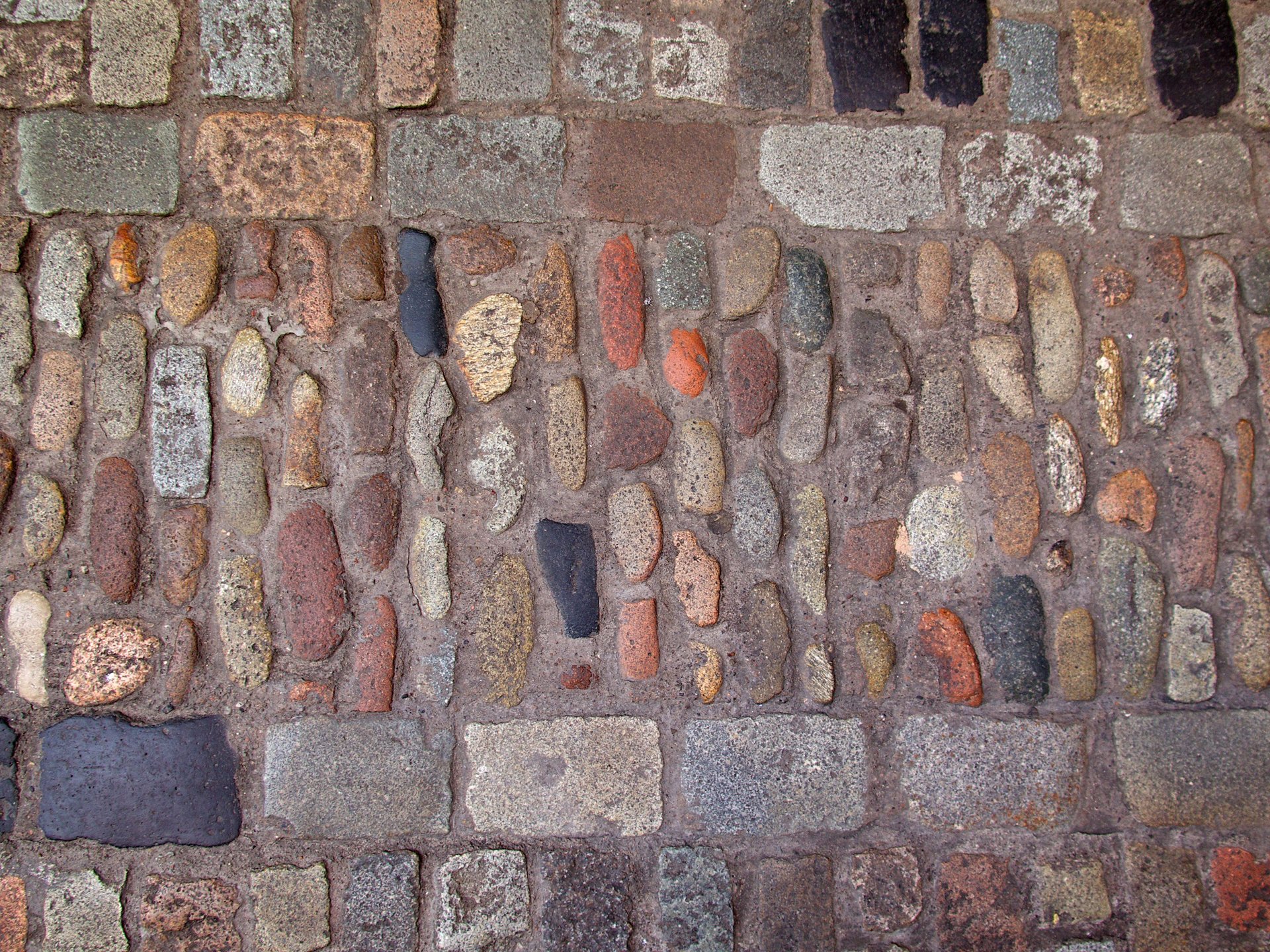 Pflastersteine, mit denen die Straße ausgekleidet ist