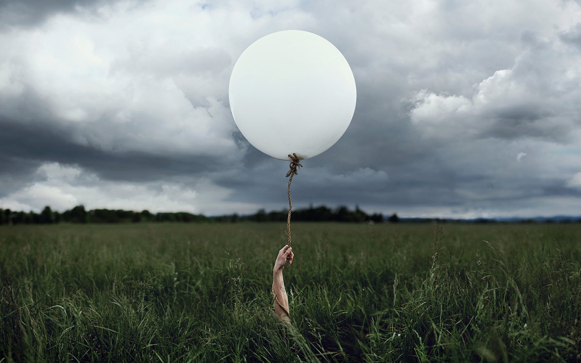 Die Hand im Feld hält den Ball. graues Wetter
