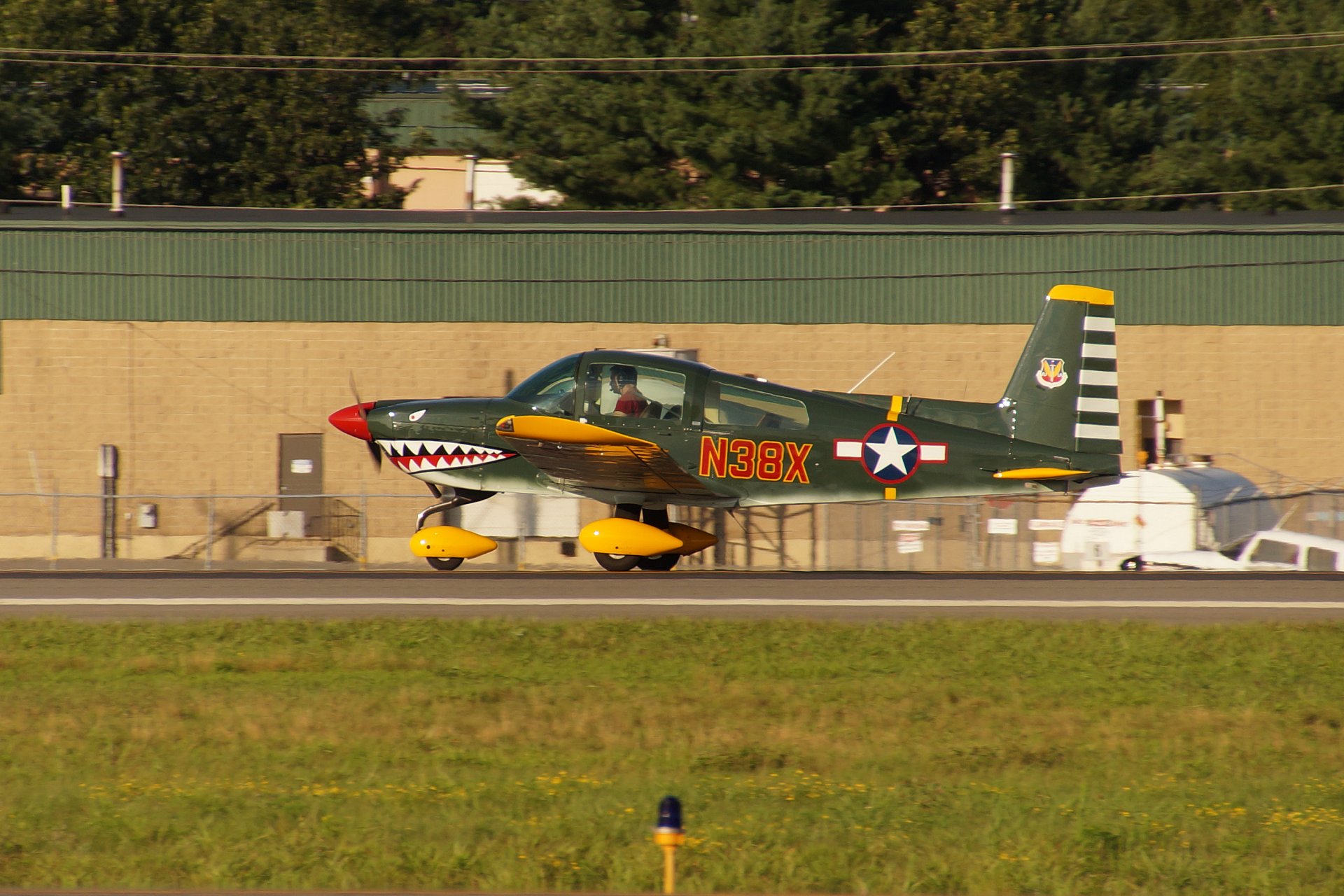 Grosses Grumman-Flugzeug bei der Landung am Hangar
