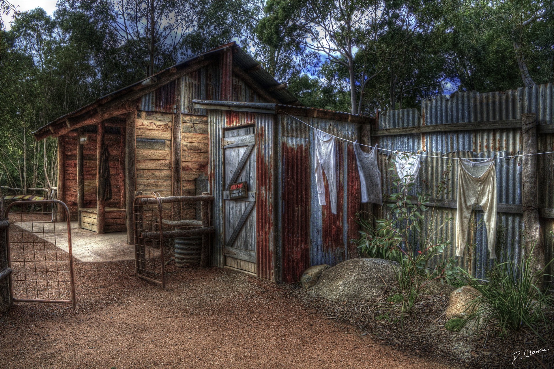 Rustikales Haus mit zum Trocknen hängender Wäsche an einem Seil