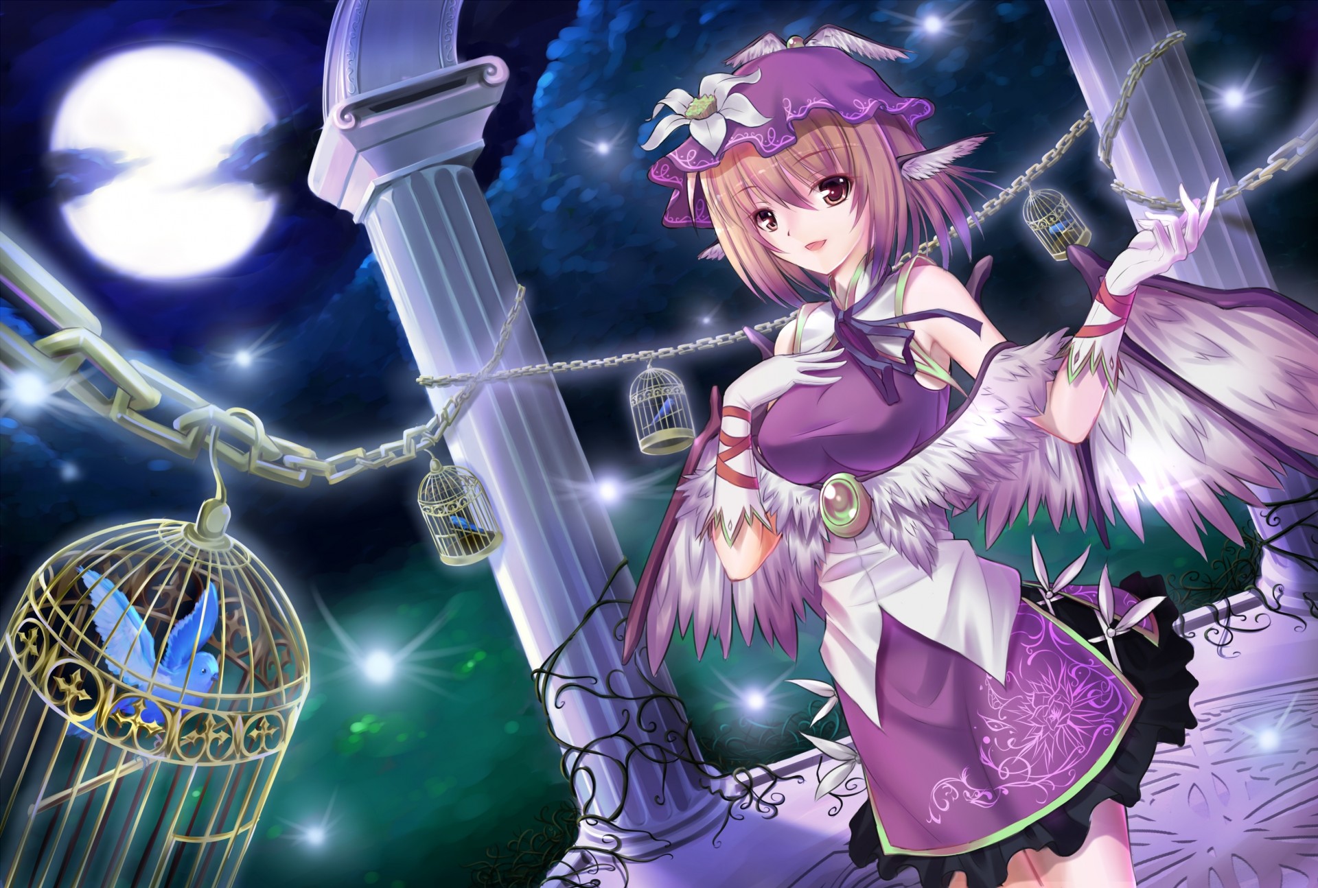 Anime-charakter-mädchen mit flügeln auf mondhintergrundAnime-Charakter-Mädchen mit Flügeln auf Mondhintergrund