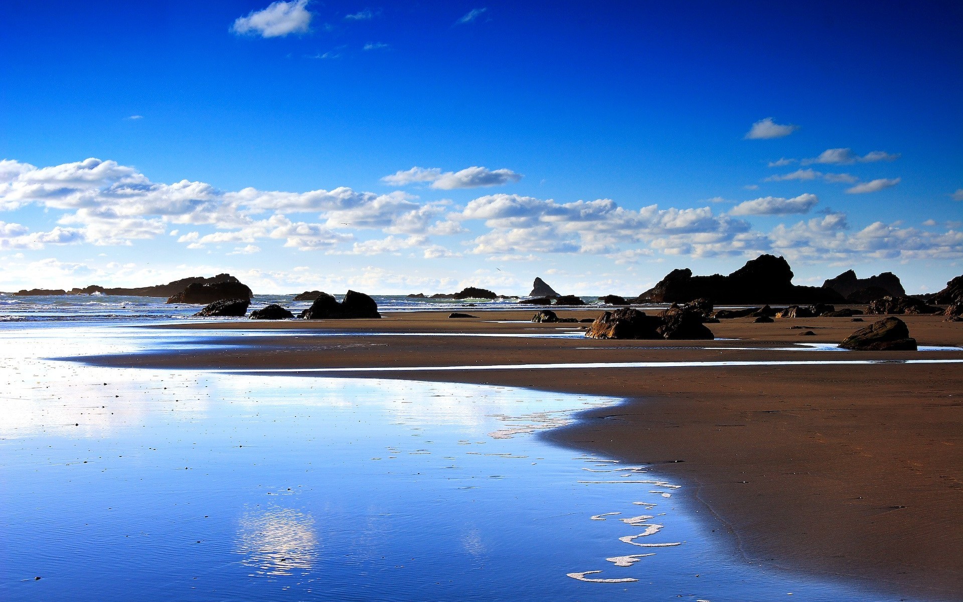 Brücke, Wasser, Riesenrad bei Sonnenuntergang
